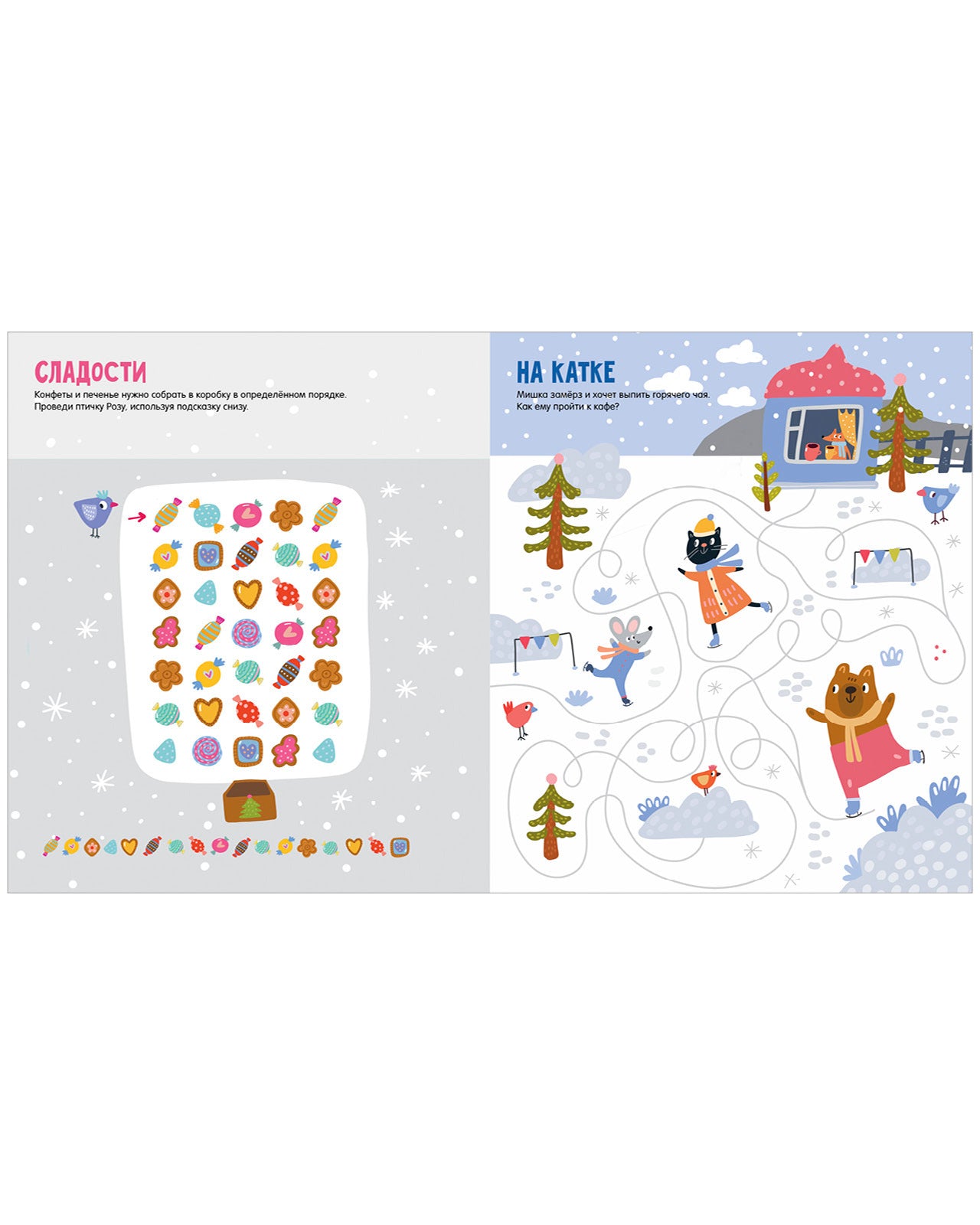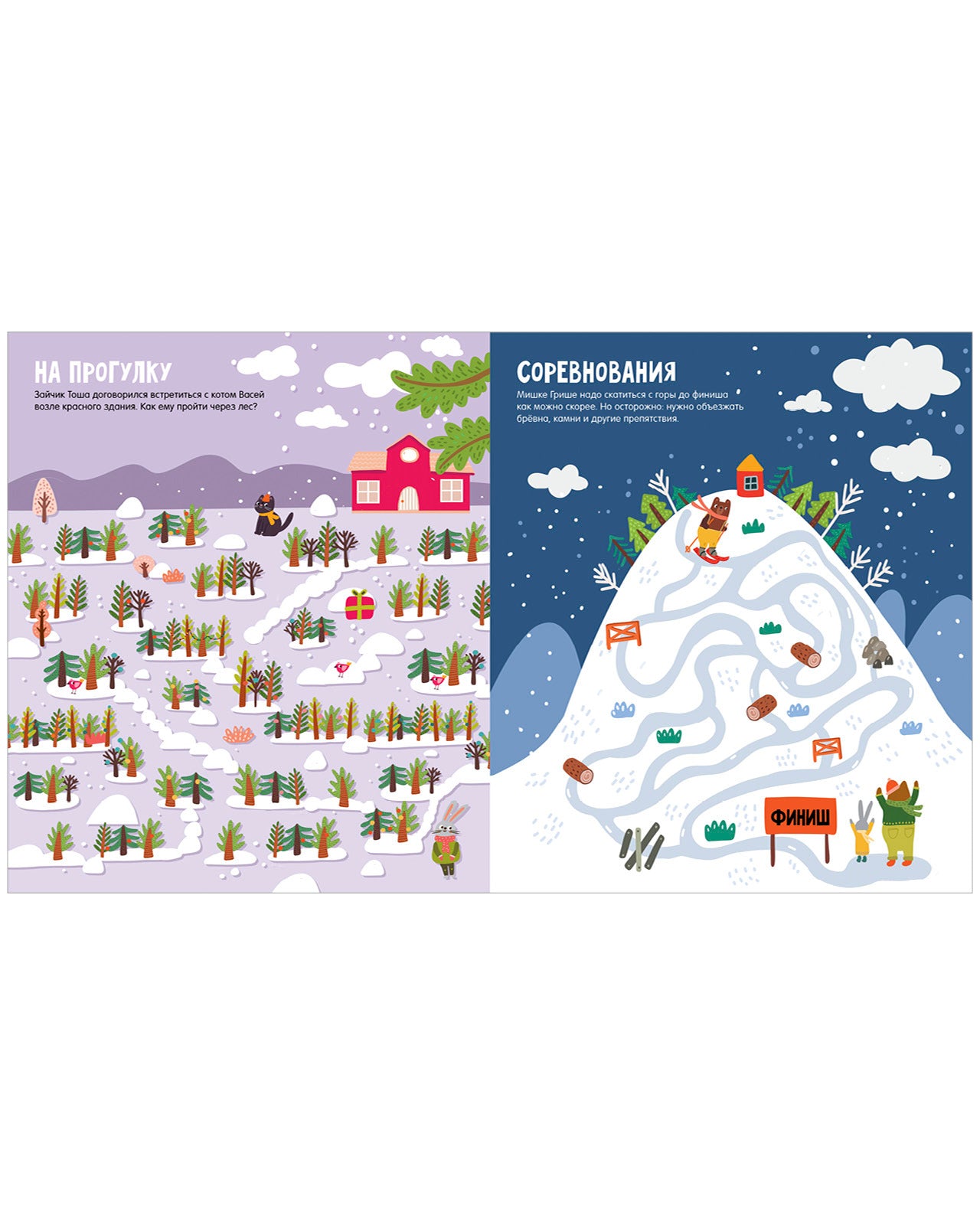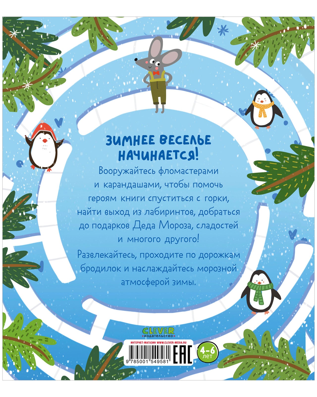 «Дед Мороз, подарки и настоящие зимние приключения ждут на страницах этой книжки! Десятки снежных лабиринтов подарят вашему ребенку праздничное настроение и много часов увлекательных игр», — редактор Clever. Книга «Снежные лабиринты» — это 28 разнообразных ходилок и бродилок, которые так любят дети. Для ребенка это не только развлечение, но и тренировка логического мышления, памяти и внимания, подготовка руки к письму. На страницах ждут настоящие зимние приключения: покататься на лыжах с пингвинами, прогуляться по заснеженному лесу, найти выход из ледяных лабиринтов, добраться до подарков Деда Мороза и много чего еще. «Снежные лабиринты» не оставят равнодушным маленького непоседу и увлекут его на пару-тройку часов. Подарите ребенку зимнее веселье!