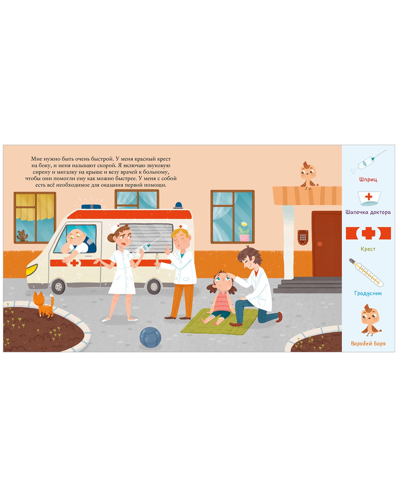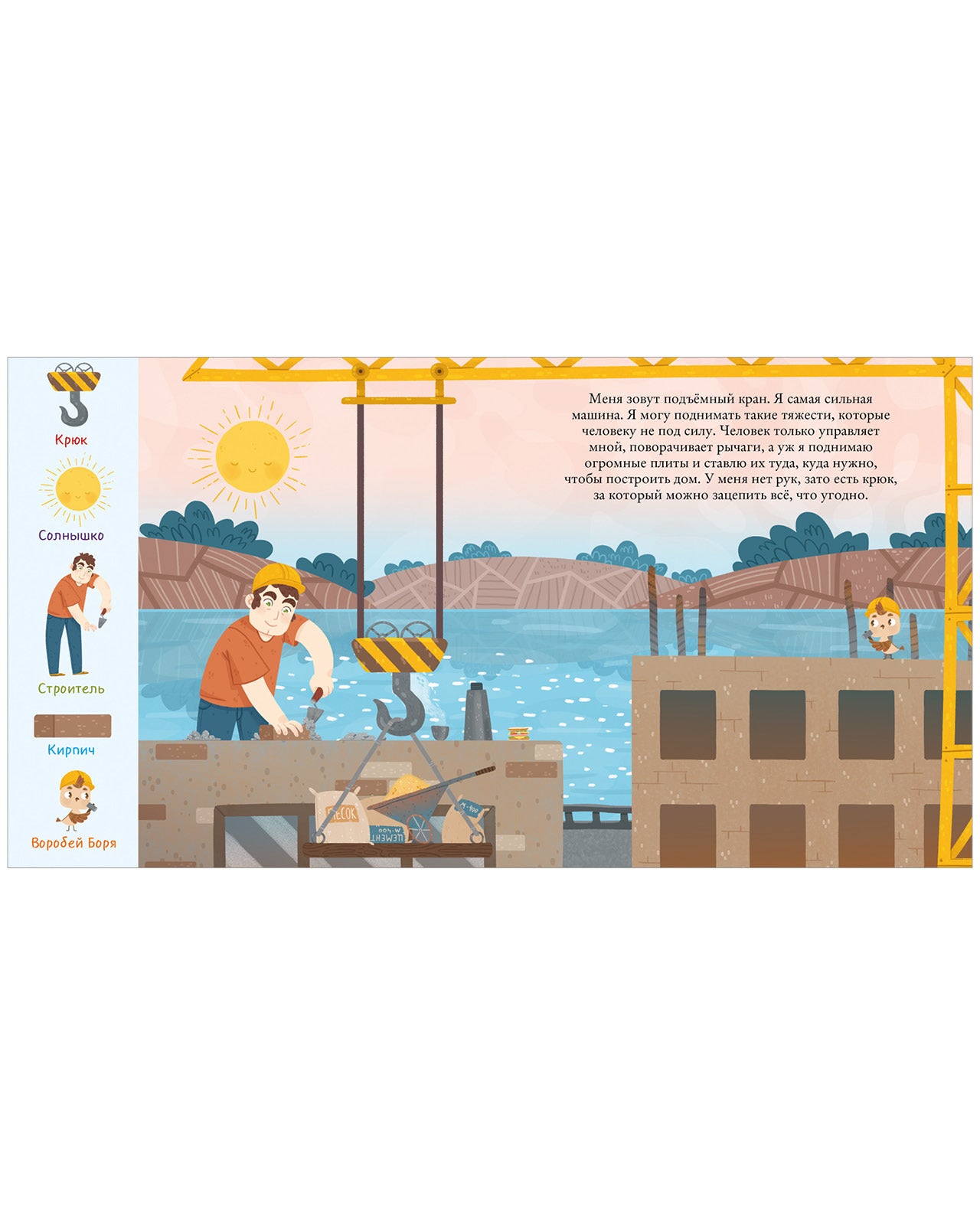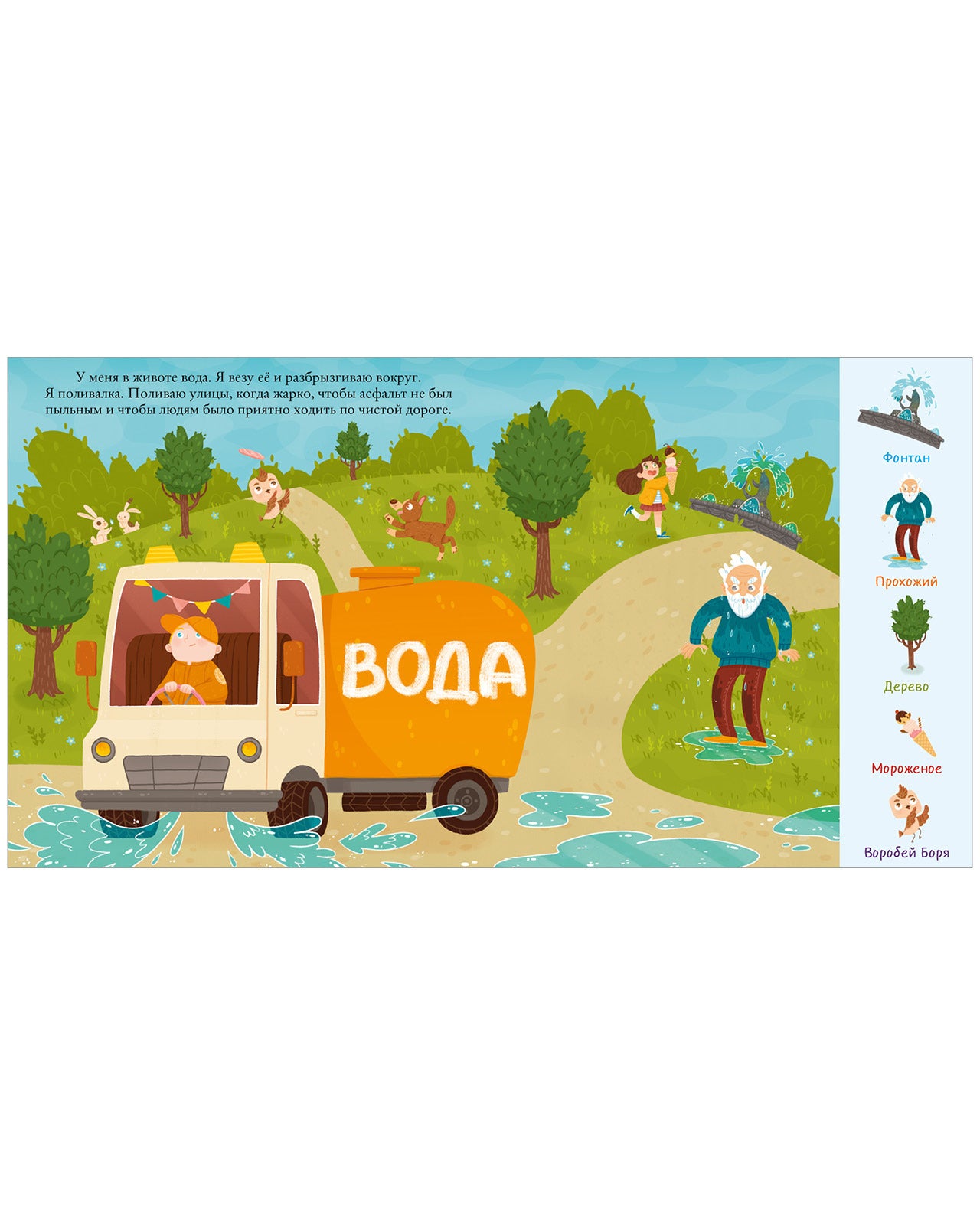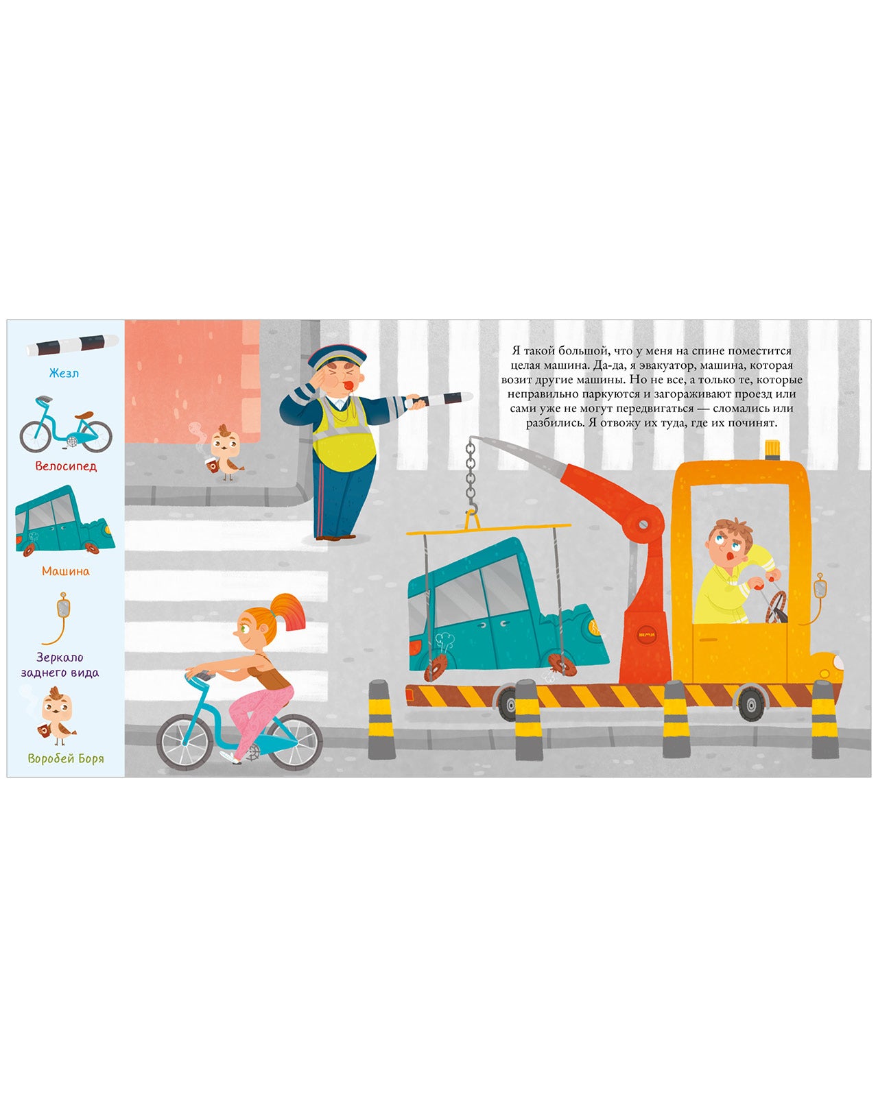 На страницах находилки «Найди и покажи, малыш. Машины и машинки» маленького читателя ждут увлекательные задания на внимательность и любимая игра на поиск предметов. Рассматривайте панорамные картинки, знакомьтесь с грузовиком, бетономешалкой, мусоровозом, подъемным краном, скорой помощью и многими другими машинами и ищите пять заданных предметов на каждом развороте. Один милый герой — воробей Боря — будет сопровождать вас с малышом по всей книге. Где он спрятался?