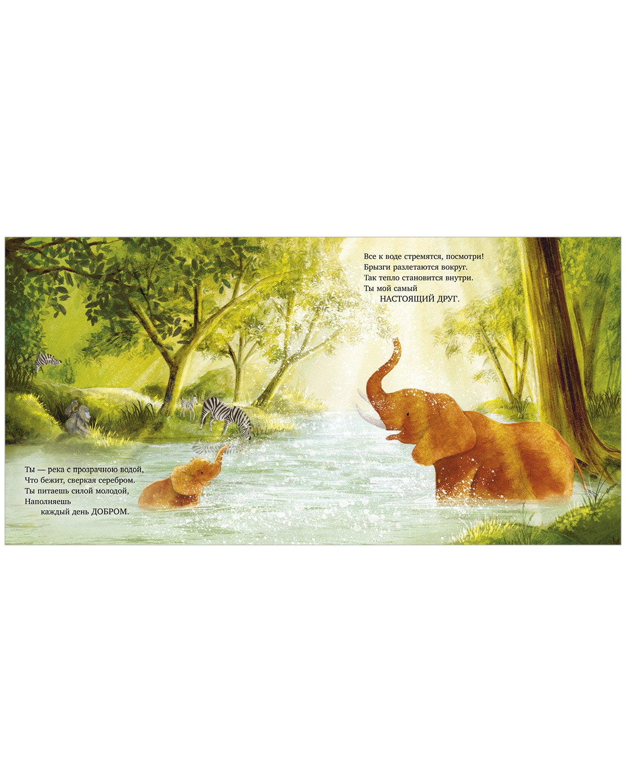 Мама-слониха всем сердцем любит своего малыша! Вместе они играют, гуляют по саванне, лакомятся вкусными листочками и радуются каждому дню. Слоненок всегда окружен вниманием и заботой. Ведь любовь мамы самая сильная на свете!