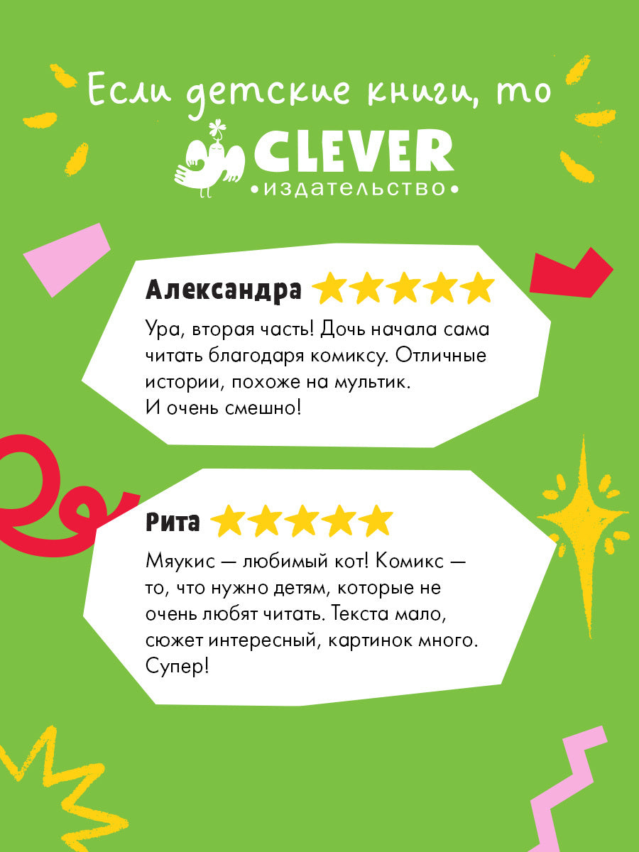 Книга детская «Мяукис. Каникулы у бабушки-колдуньи» — отличный подарок ребенку. Комикс понравится всем, кто любит увлекательные книги для детей, детские книги в формате комиксов, смешные истории для чтения, книги Clever (Clever издательство) с яркими картинками.