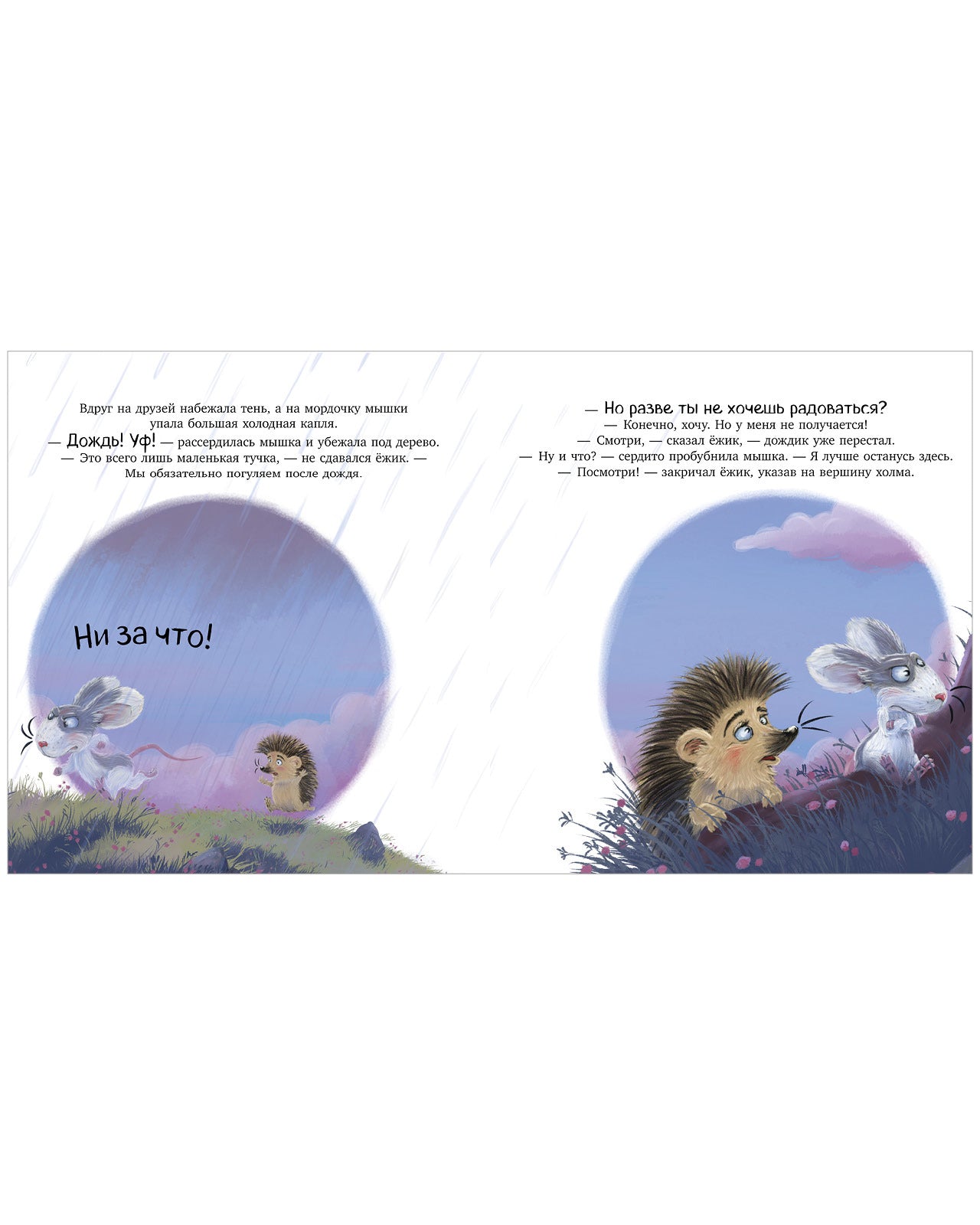 Однажды ежик и мышка отправились на прогулку. Но день у мышки не задался: ей холодно, скучно и хочется дуться на весь белый свет. Что же сделает ежик? Получится ли у него развеселить мышку и понять один важный секрет?