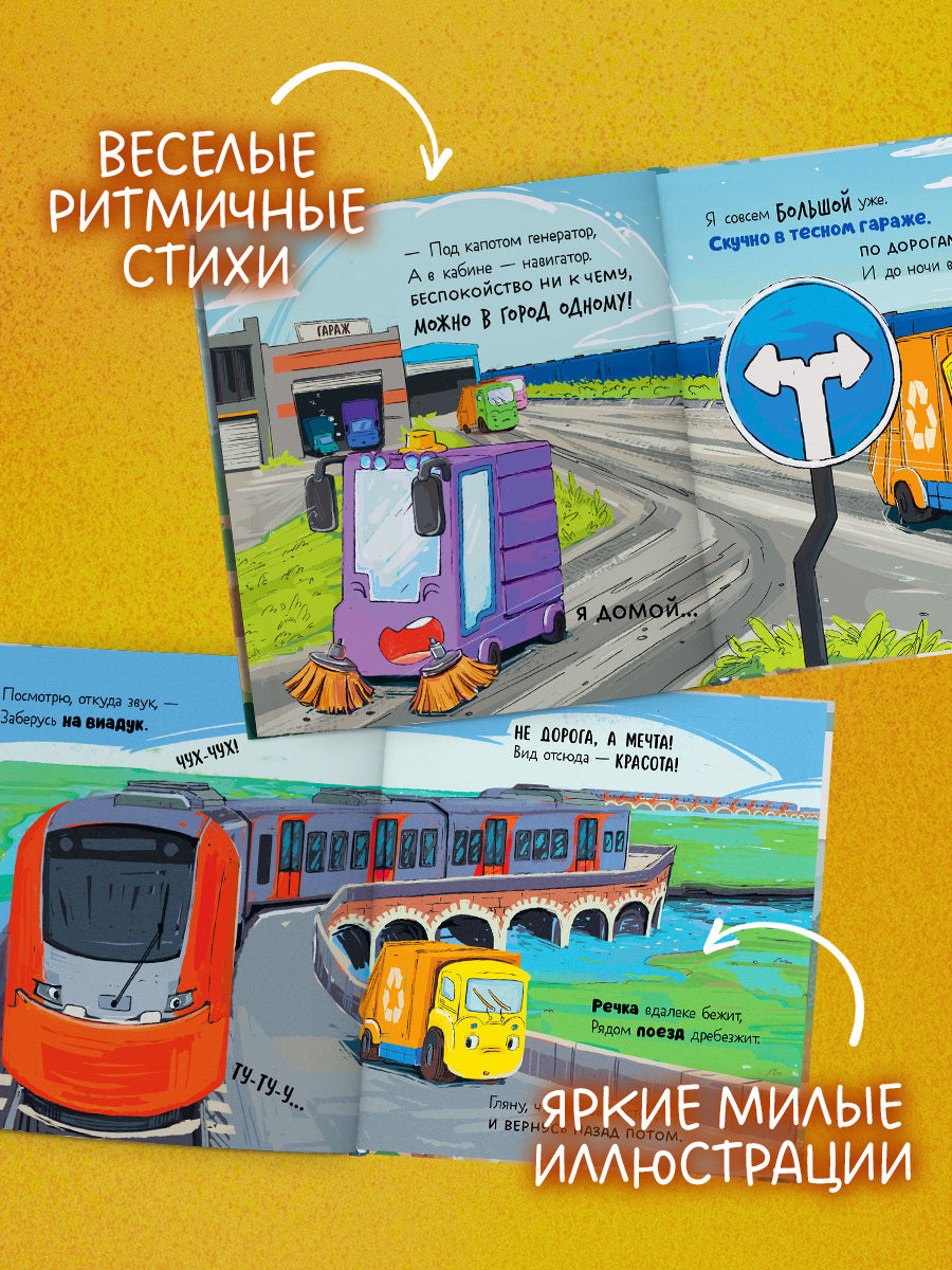 «Малыш мусоровоз заблудился в городе» — веселая книга с яркими иллюстрациями, отличный подарок ребенку 2 года, который любит слушать книги для малышей о машинках, детские книги в стихах, любит развивашки 2–3 года и добрые сказки для детей.