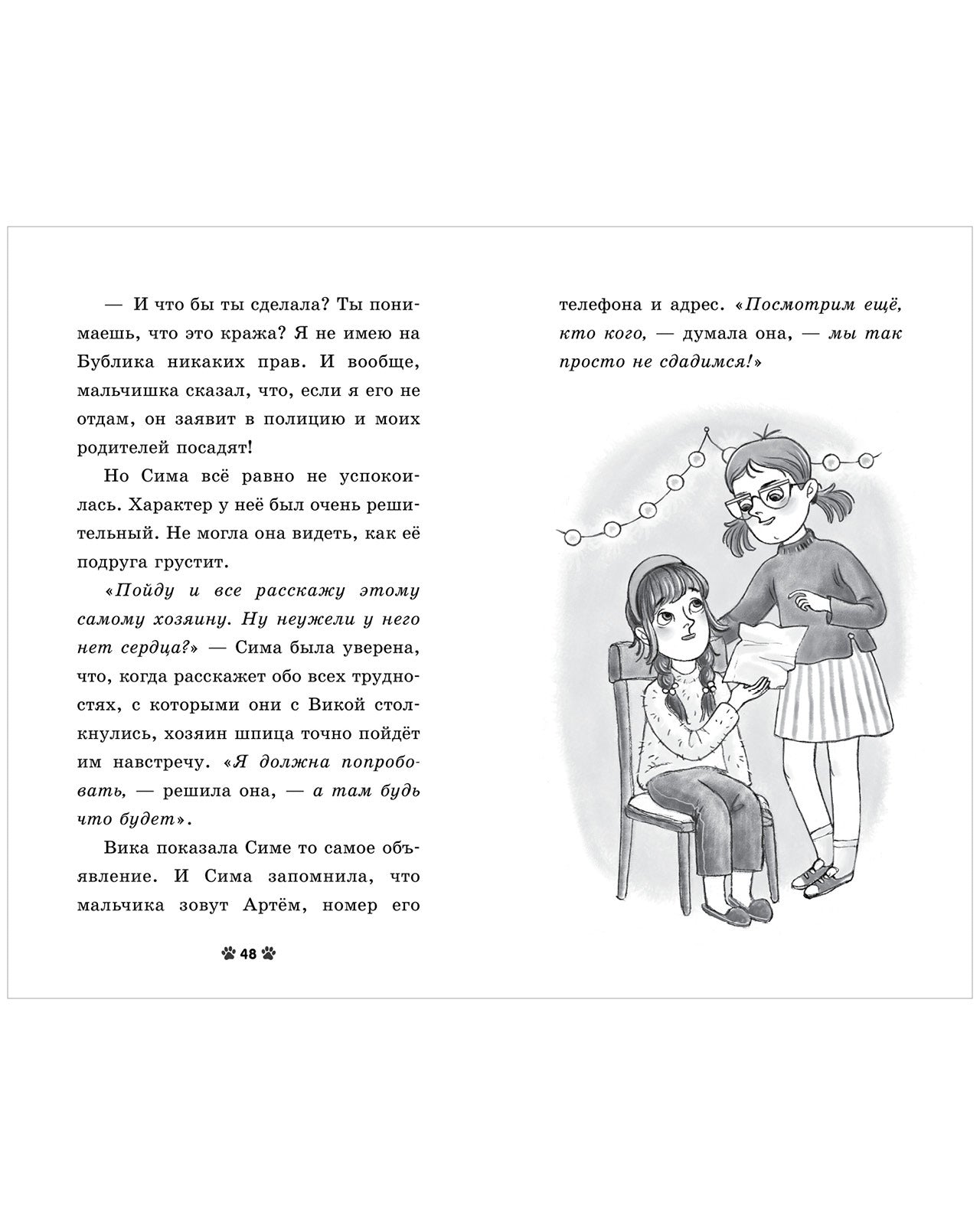 • Крупный шрифт, сюжетные черно-белые иллюстрации