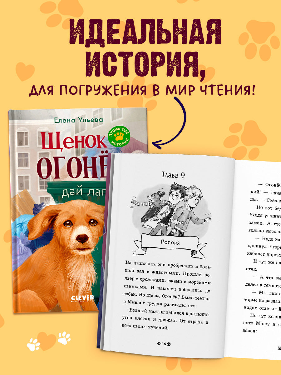 Трогательная и светлая история о дружбе «Щенок Огонек, дай лапу!» научит мальчиков и девочек любить животных и заботиться о них. Интересные книги серии «Пушистые истории» — идеальные книги для детей 7 лет. Книга детская про щенка Огонька понравится родителям, которые ценят Clever издательство и ищут книги для школьников, для самостоятельного чтения.
