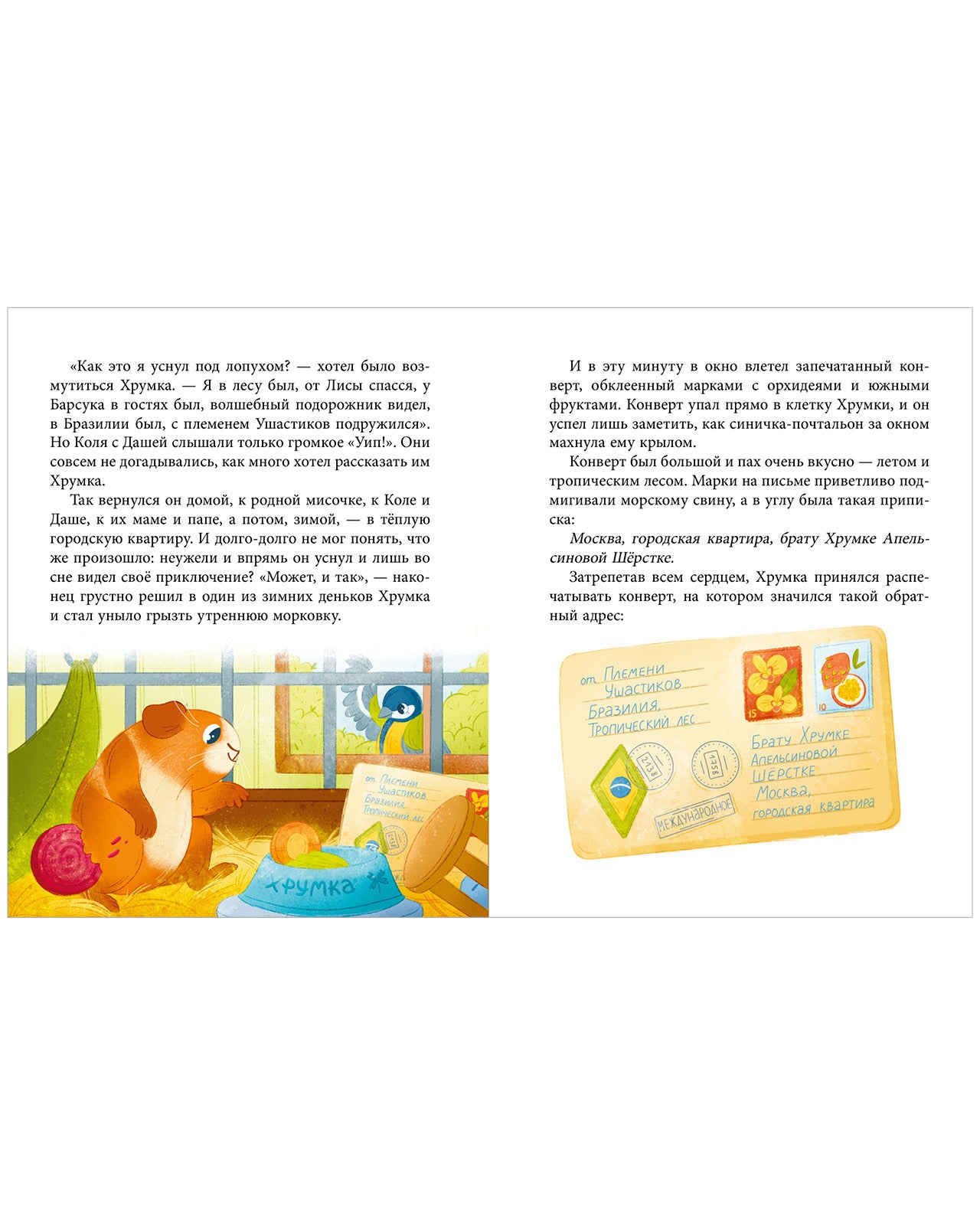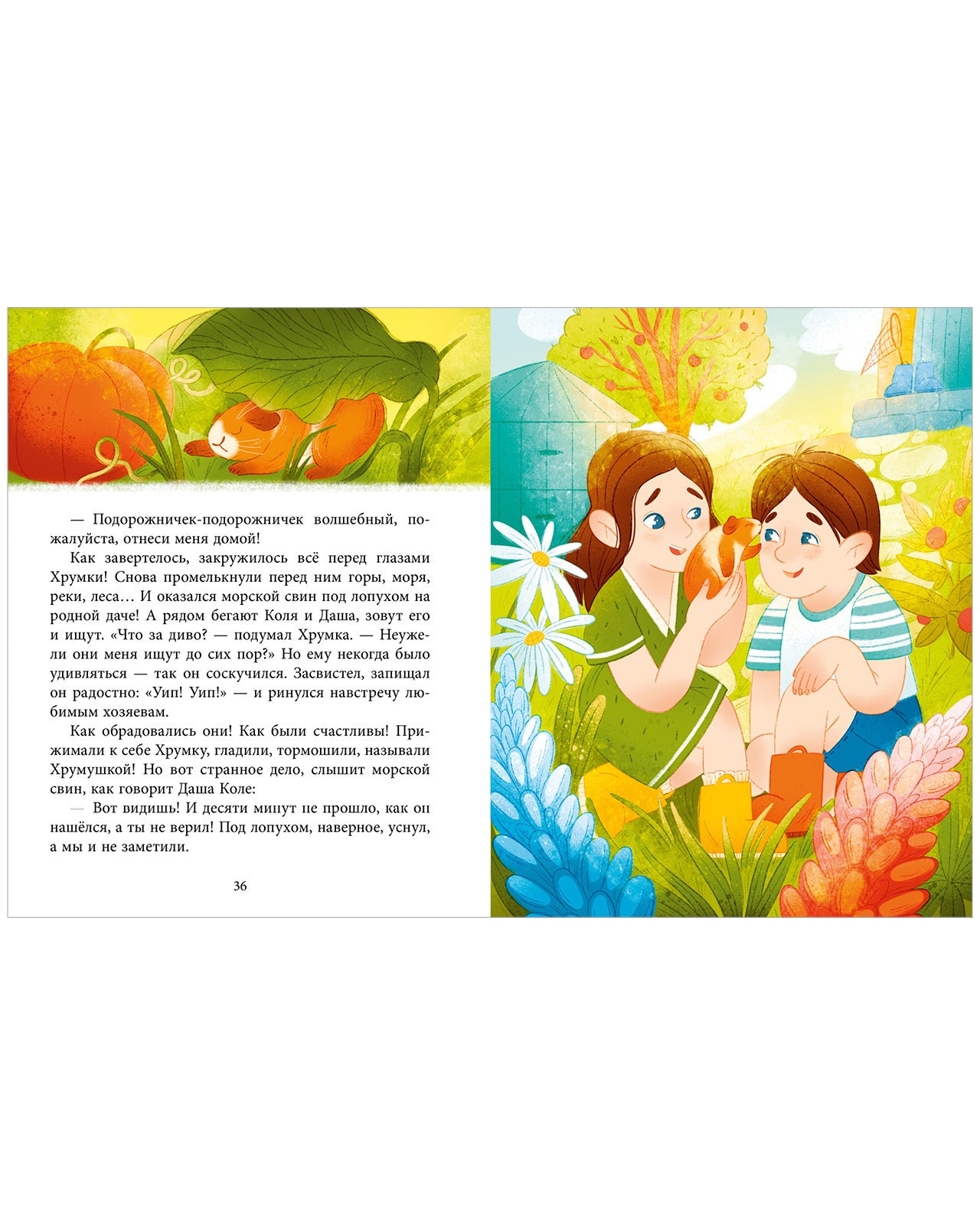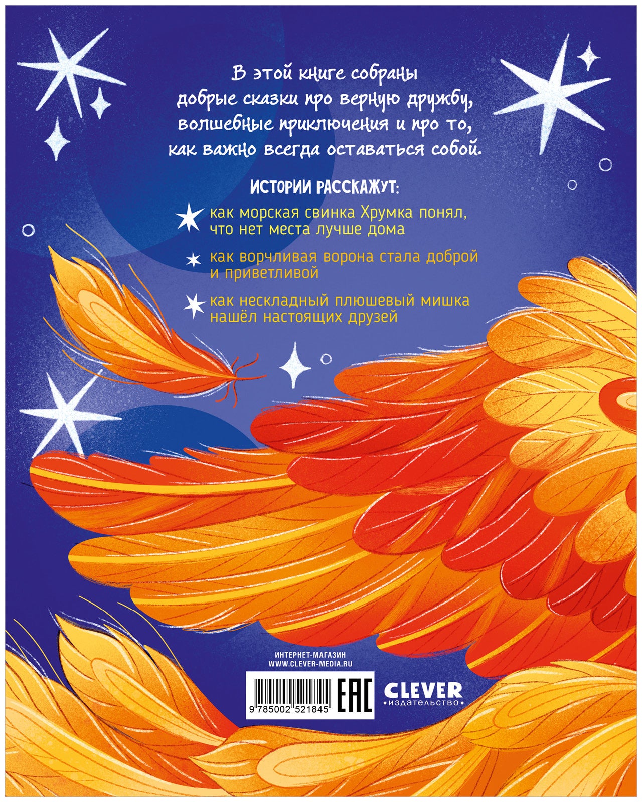 Увлекательные сказки для детей познакомят маленького читателя с обаятельной морской свинкой Хрумкой из племени Ушастиков и его невероятными приключениями, ворчливой вороной, которая превратилась в настоящую Жар-Птицу, и нескладным плюшевым мишкой из магазина игрушек.