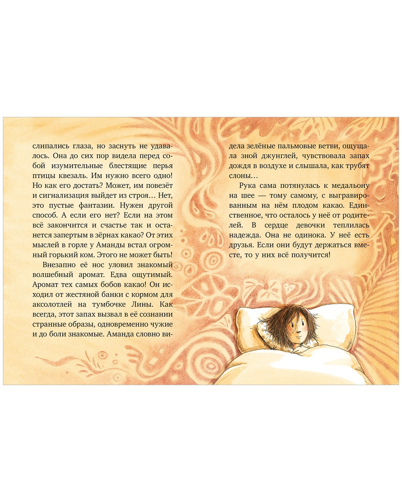 В каждой книге дети из приюта отправляются на поиски нового ингредиента для волшебного какао счастья. Поиски четвертого ингредиента приводят любительницу приключений Аманду и ее друзей в музей. Именно там они находят древнюю корону майя, сделанную из мерцающих перьев птицы квезаль. Всего лишь одно такое перо нужно детям, чтобы сварить какао счастья! Но корона тщательно охраняется. Ребятам нужен по-настоящему хороший план… Удастся ли Аманде с друзьями заполучить перо?