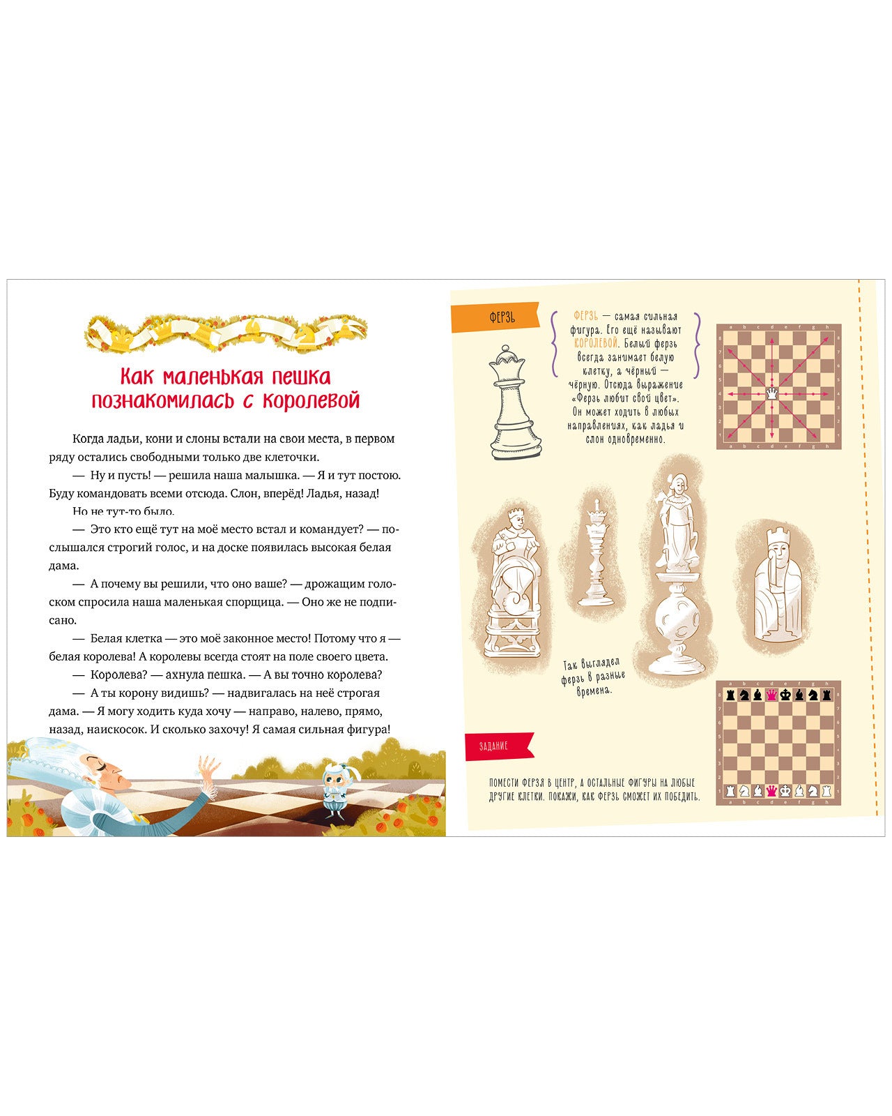После каждой сказки ребят ждет познавательная страничка с заданиями для закрепления знаний. Игра в шахматы развивает у детей логику, внимание и память. Книжка с большими картинками и интересными сказками заинтересует ребенка игрой и даст основы для дальнейшего обучения.