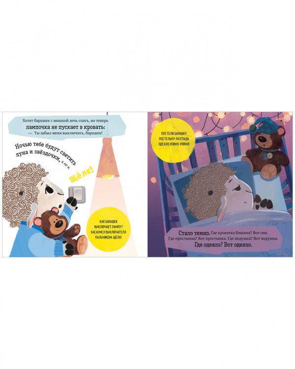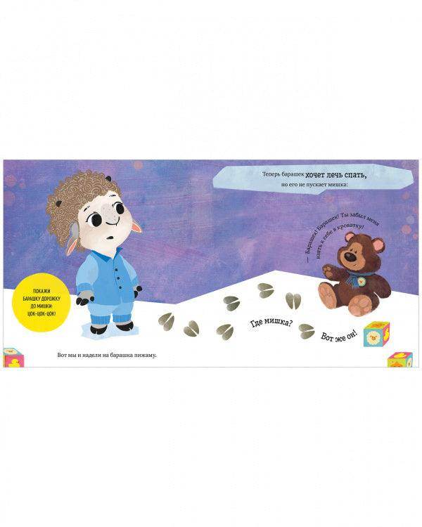 Книга «Барашек Бяша ложится спать» с помощью игры и очаровательного персонажа научит малыша легко засыпать самостоятельно.