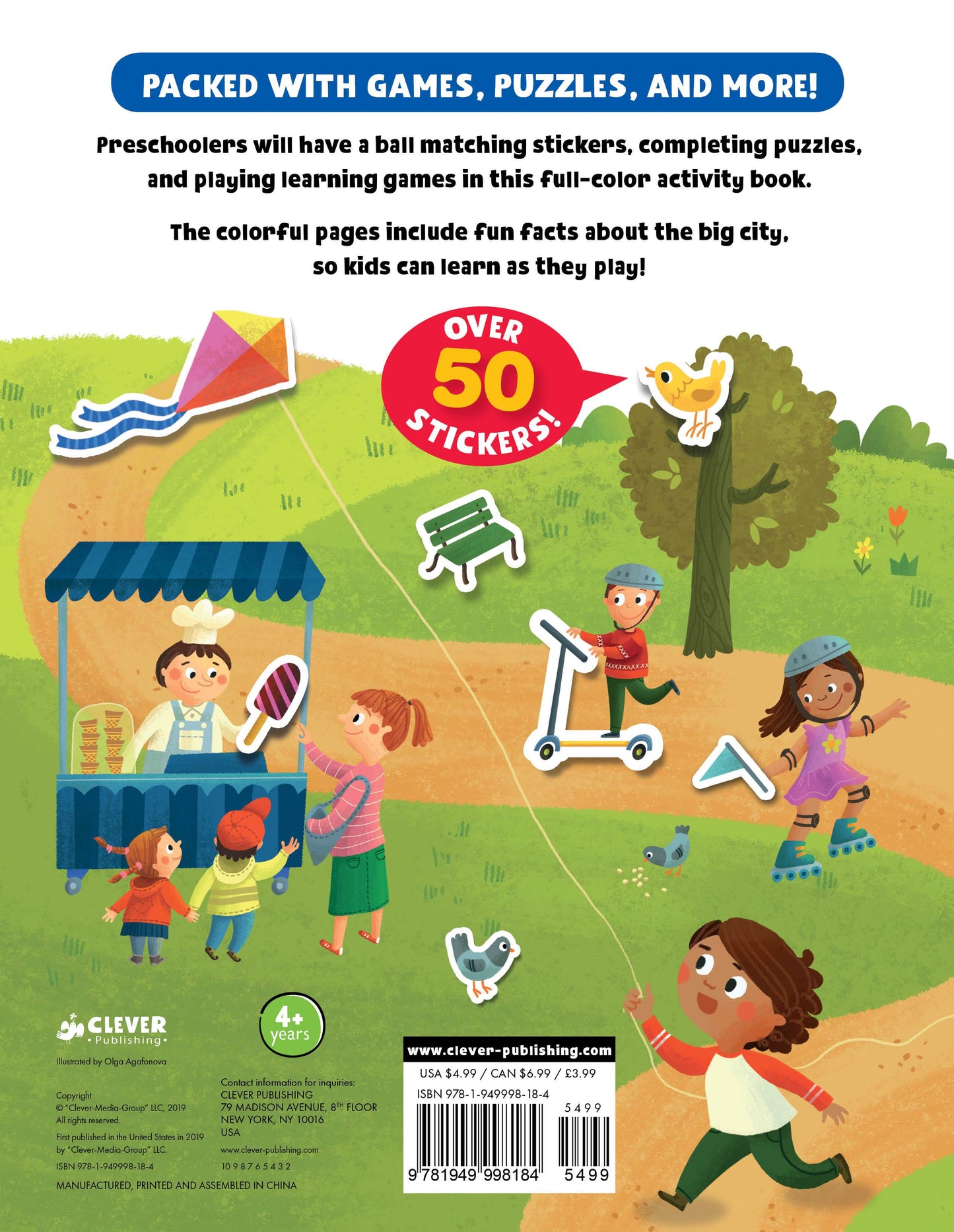 Preschoolers will have a ball matching stickers, completing puzzles, and playing learning games in this fullcolor activity book. Chockfull of things to do, little readers will be entertained while sharpening their fine motor skills. The bright pages also feature an interactive story about all the things to explore in the city the zoo, the fair, and lots more places to discover!