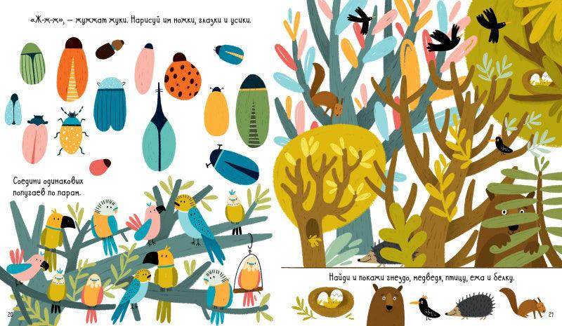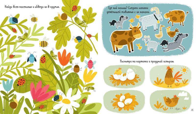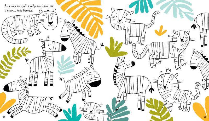 Ребенку предстоит изучить животных в зоопарке, на море и в джунглях, помочь найти детенышей коровы и лошади, придумать историю про курицу и яйцо, найти пару для попугаев, раскрасить и посчитать тигров и зебр, спасти маленького диплодока от тираннозавра и спрятать его в домике в конце лабиринта. В общем, работы малышу предстоит много! На то, чтобы дойти до самого конца «Большой книги игр и заданий про животных», уйдет много времени, а главное, это будет весело и интересно!