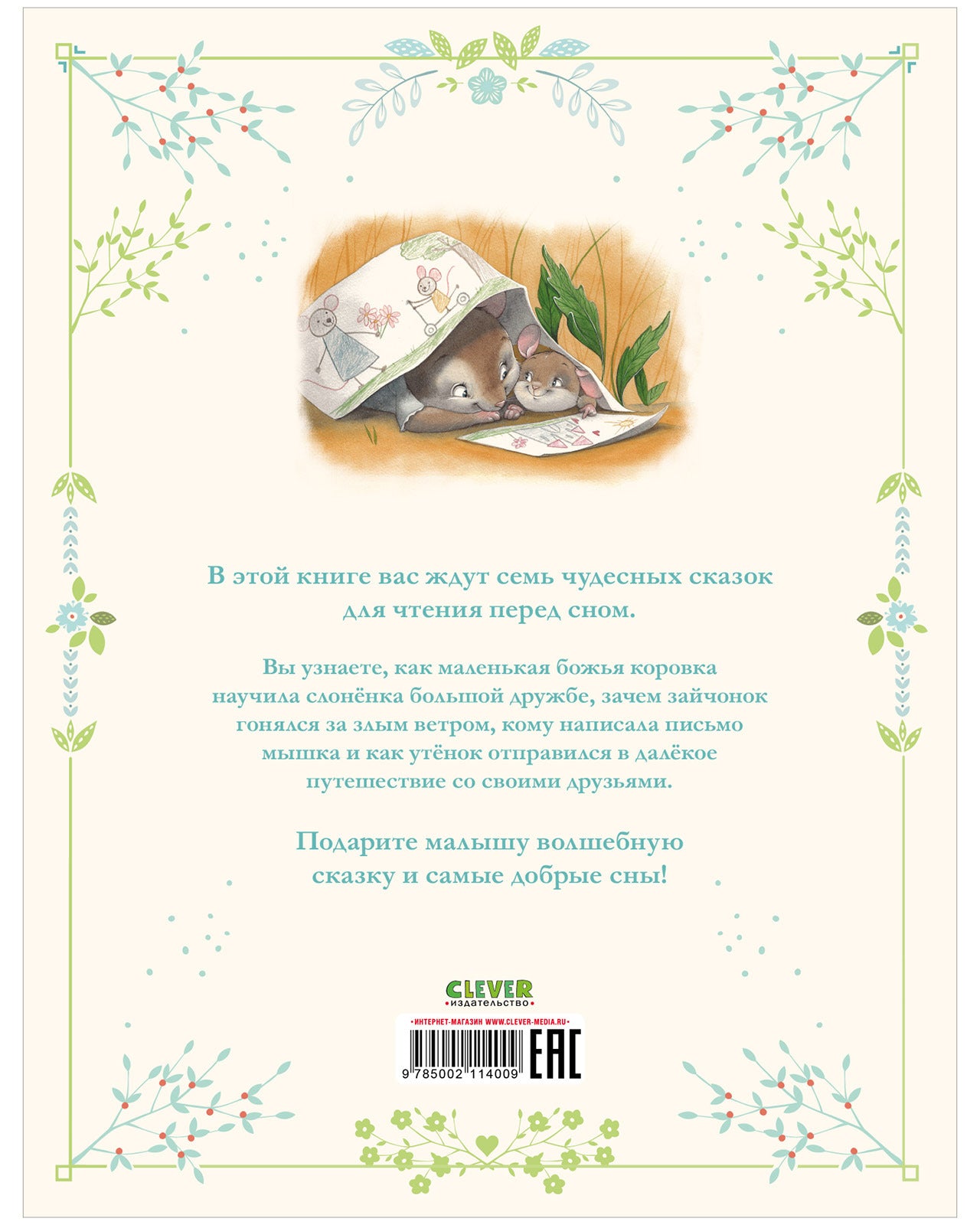 В этой книге вас ждут семь чудесных сказок для чтения перед сном. Вы узнаете, как маленькая божья коровка научила слонёнка большой дружбе, зачем зайчонок гонялся за злым ветром, кому написала письмо мышка и как утёнок отправился в далёкое путешествие со своими друзьями.