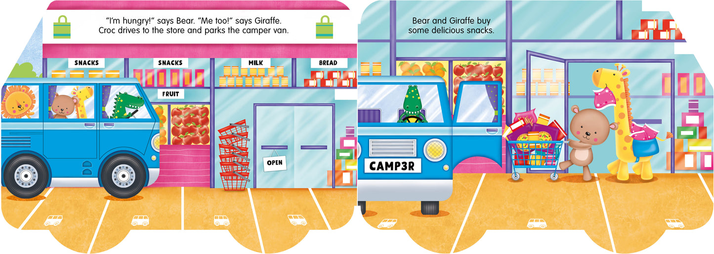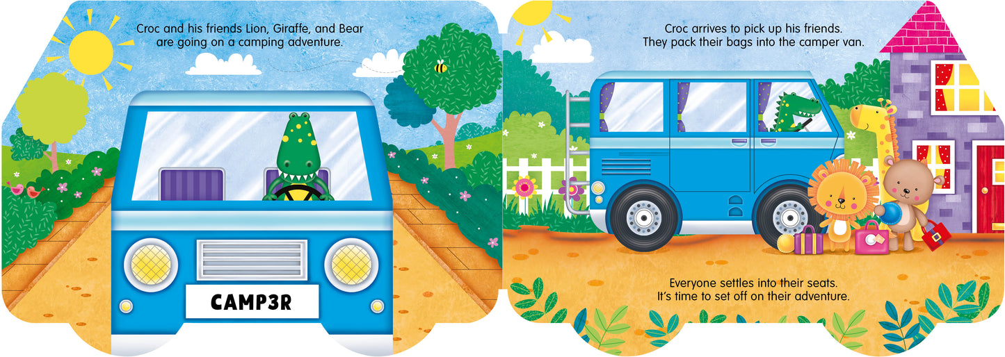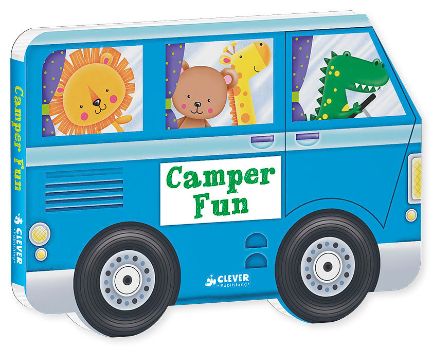 Bear and friends are going camping with this board book shaped like a camper! Clever's Wonder Wheels series introduce toddlers to popular vehicles in a grabable, holdable format! The thick board pages feature colorful illustrations that entertain and engage little learners. Camper Fun is the perfect size for toddlers to tote with them wherever they go and the perfect shape to zoom around their favorite play space!