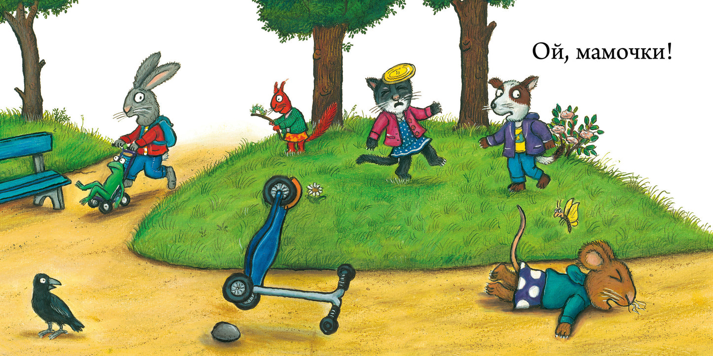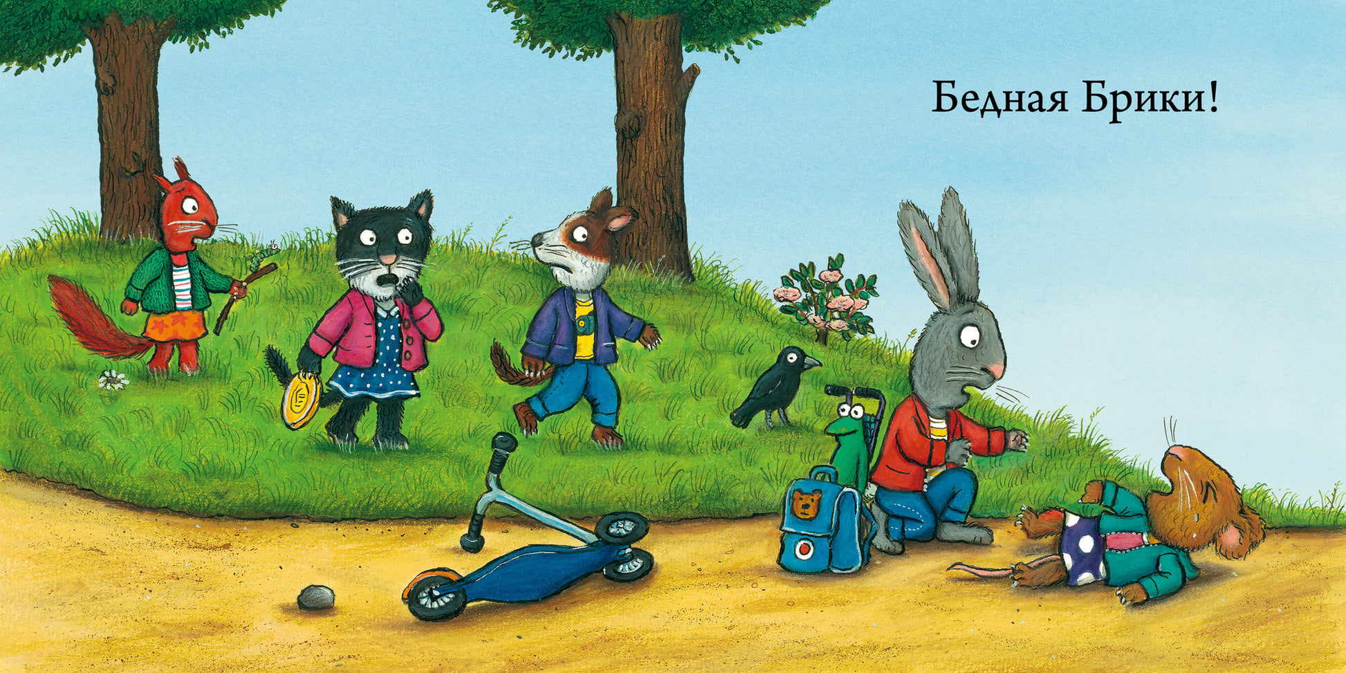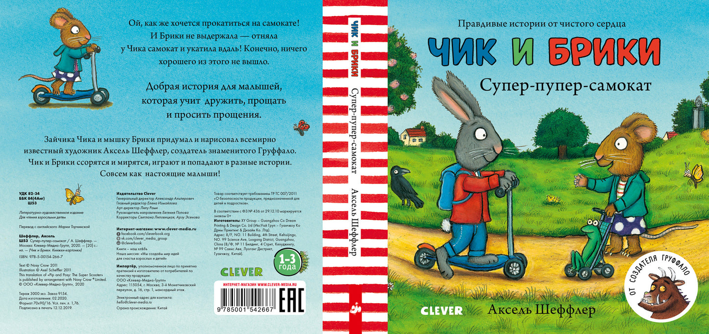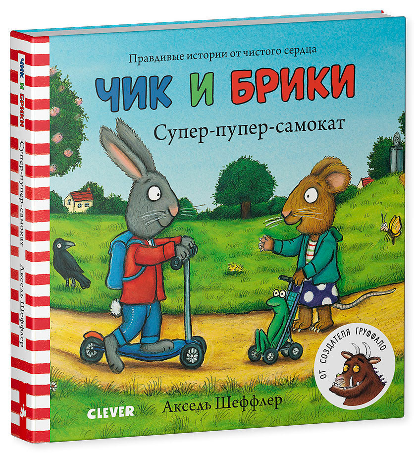 Ой, как же хочется прокатиться на самокате! И Брики не выдержала — отняла у Чика самокат и укатила вдаль! Конечно, ничего хорошего из этого не вышло. Добрая история для малышей, которая учит дружить, прощать и просить прощения. Зайчика Чика и мышку Брики придумал и нарисовал всемирно известный художник Аксель Шеффлер, создатель знаменитого Груффало. Чик и Брики ссорятся и мирятся, играют и попадают в разные истории. Совсем как настоящие малыши!