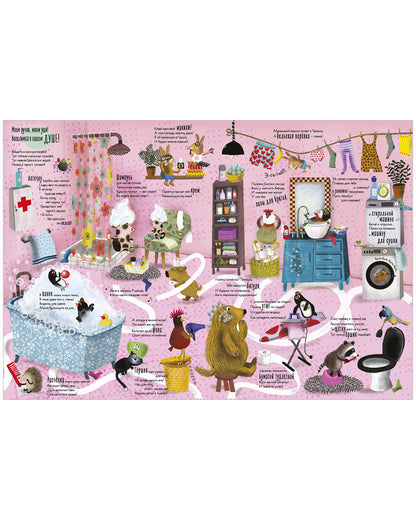 «Читай, рассматривай, играй! Все-все-все, что есть у меня в доме» — невероятно красивая и смешная книжка-гляделка для маленьких почемучек и фантазеров. На ее страницах вы найдете 200 предметов (мебель, посуду, одежду) и забавные стихи о них.