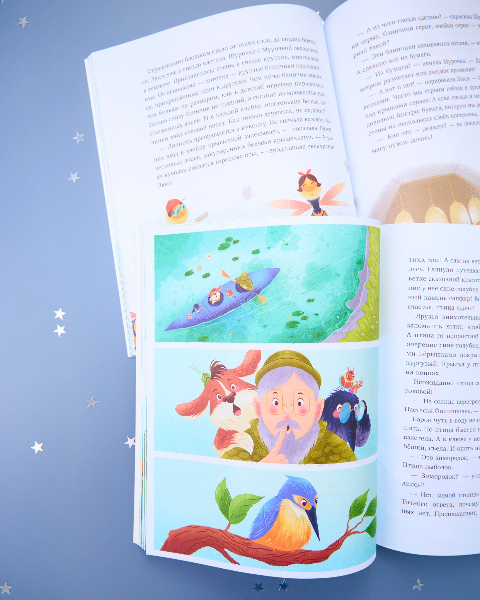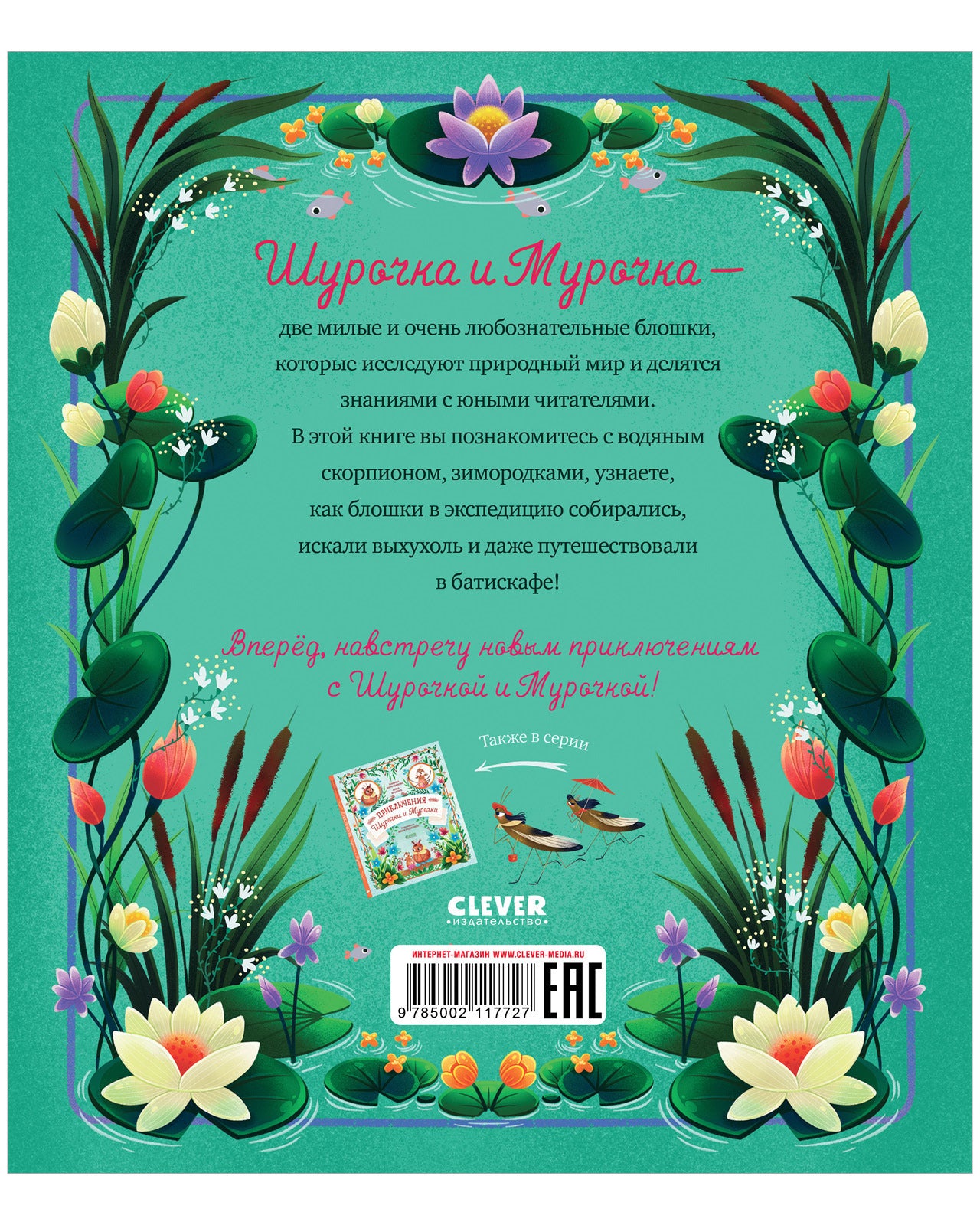 Шурочка и Мурочка — две милые и любознательные блошки. Они исследуют природный мир и делятся знаниями с юными читателями. На сей раз Шурочка и Мурочка отправляются в настоящую экспедицию, во время которой им удастся познакомиться с водяным скорпионом и зимородками, побывать в осином гнезде, узнать, кто изобрел бумагу, поплавать в батискафе и найти редкое животное.