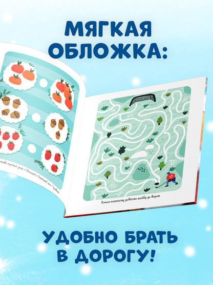 «Снежные игры, рисовалки и находилки» вышла в мягкой обложке, а это значит, что ее удобно брать с собой на прогулку или в путешествие.
