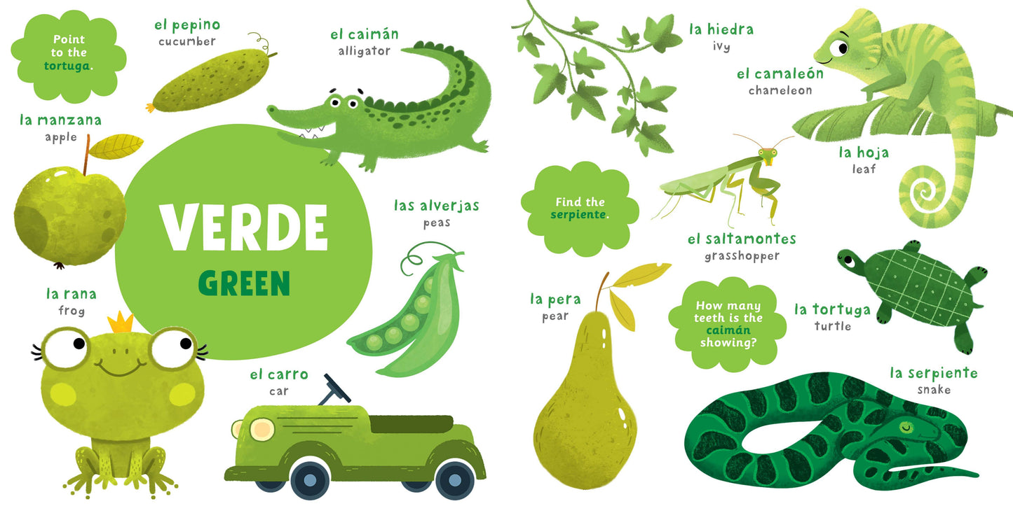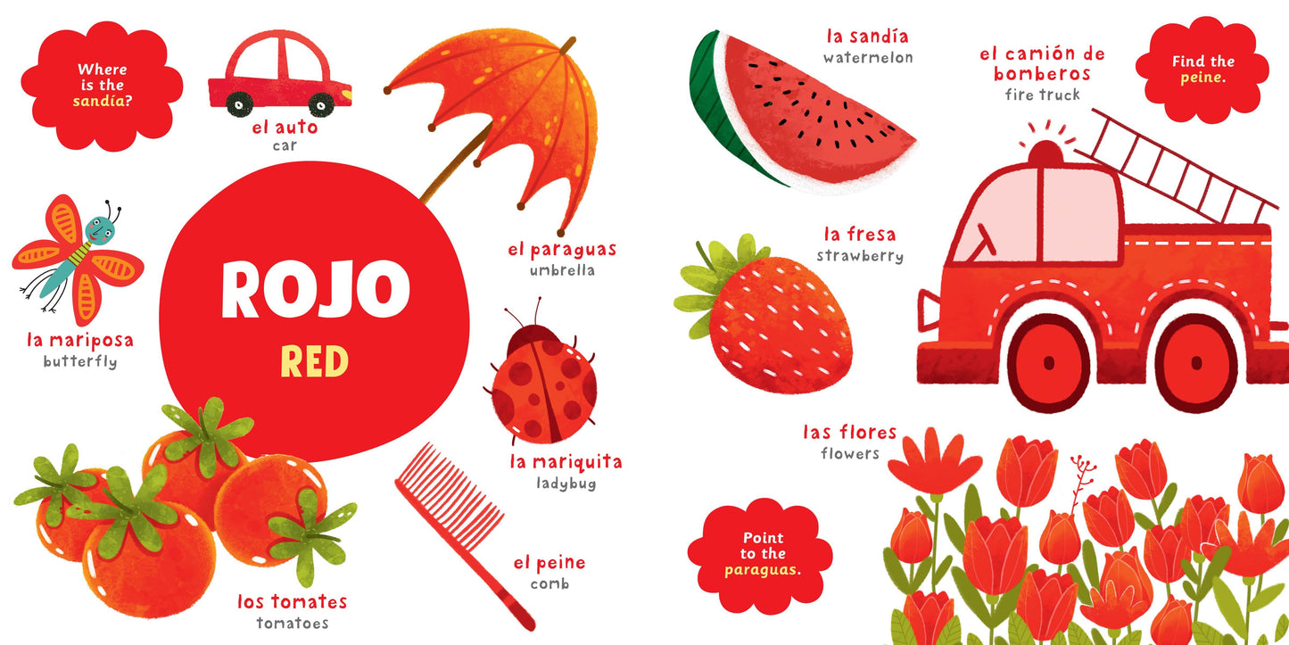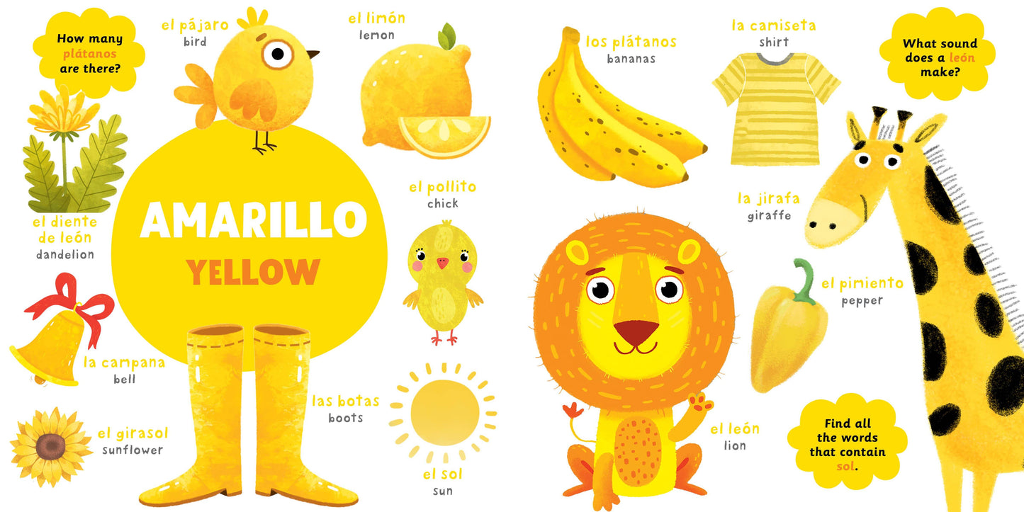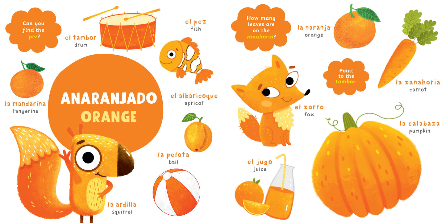 My First Spanish Colors is the perfect introduction for toddlers looking to learn the rainbow of colors and simple words in both English and Spanish. Kids will love learning their colors and what they translate to in both English and Spanish in this bilingual book of colors.