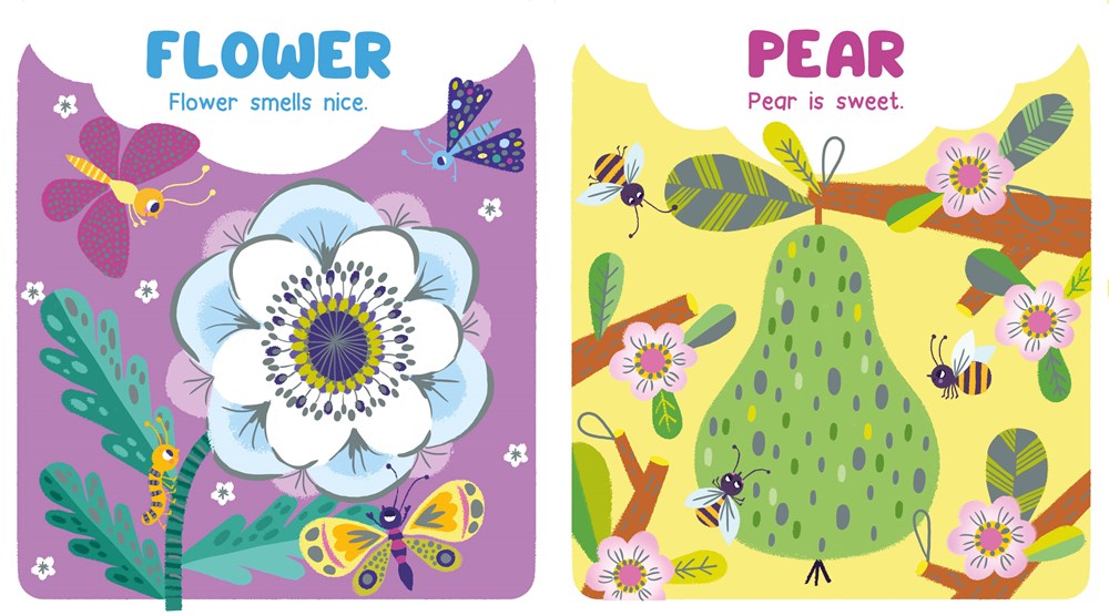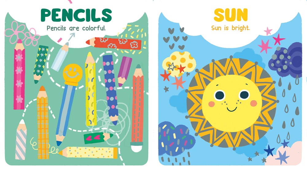 Introduce your child to first words with this adorable book! Babies will meet a host of bright, colorful characters and objects, such as a flower, a pear, pencils, the sun, and more friends. Each page features simple text, such as "Ladybug is red," and a burst of shiny foil to capture Baby's attention.