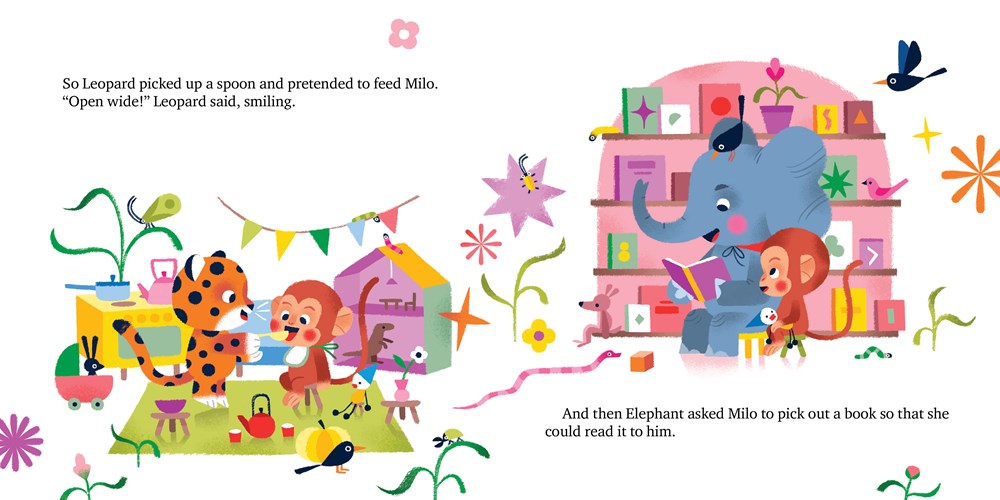 Milo the monkey is sad. His mommy has to take a trip, and he really misses her. Even being at school with everyone he knows doesn’t help. His friends join in singing and dancing with the teacher for music class, but Milo doesn’t want to dance and sing. His friends all play with toys and blocks and games during free time, but Milo doesn’t want to play. His teacher, Mrs. Zebra, asks if she can help, but Milo tells her that only Mommy can make him feel better. Then Mrs. Zebra has an idea for how to cheer up Milo. Could it work? An ideal way to introduce children to strong emotions and how to recognize and handle them.