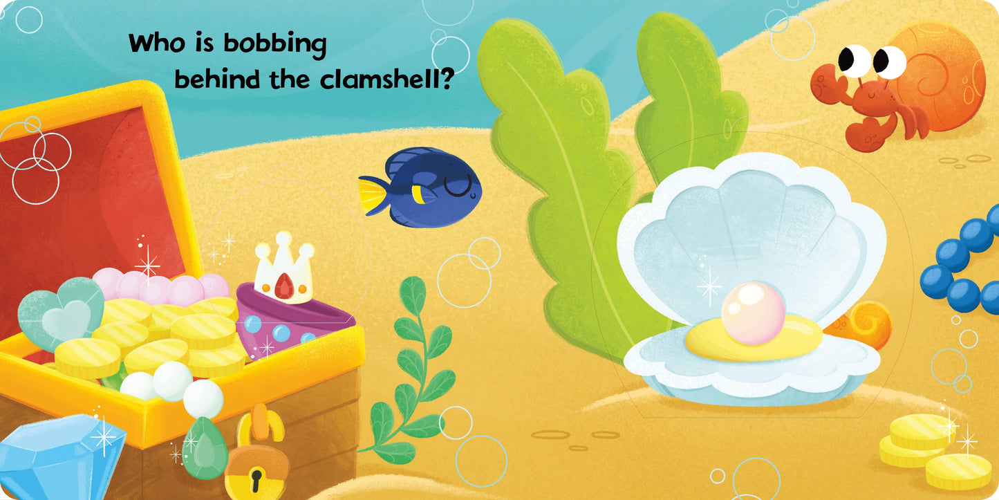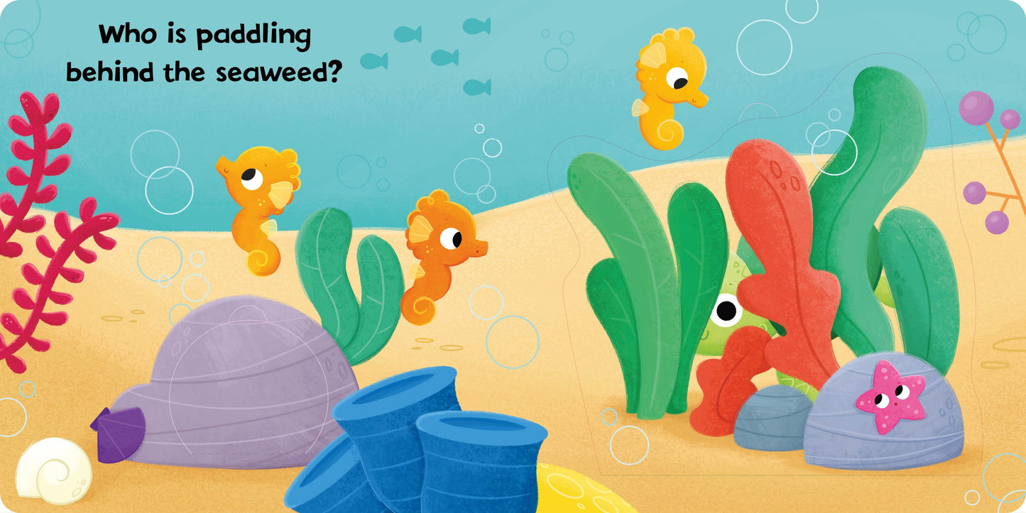 Children can learn colors with this bright, engaging board book that features a lift-the flap on every spread. Part of the Clever First Concepts series, In the Sea is an underwater adventure that takes readers behind a patch of seaweed to find a green sea turtle; inside a sunken ship to find a red crab; and to many other underwater locations to discover a host of colorful ocean friends. Questions on each spread encourage active reading as children are asked to find who is leaping through a wave; who is resting behind the coral; and more. The sturdy board pages are just the right size for little hands, and the lift-the-flaps help children to improve their hand-eye coordination as they open and close each flap.