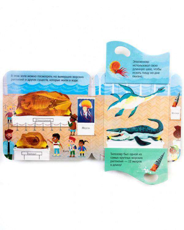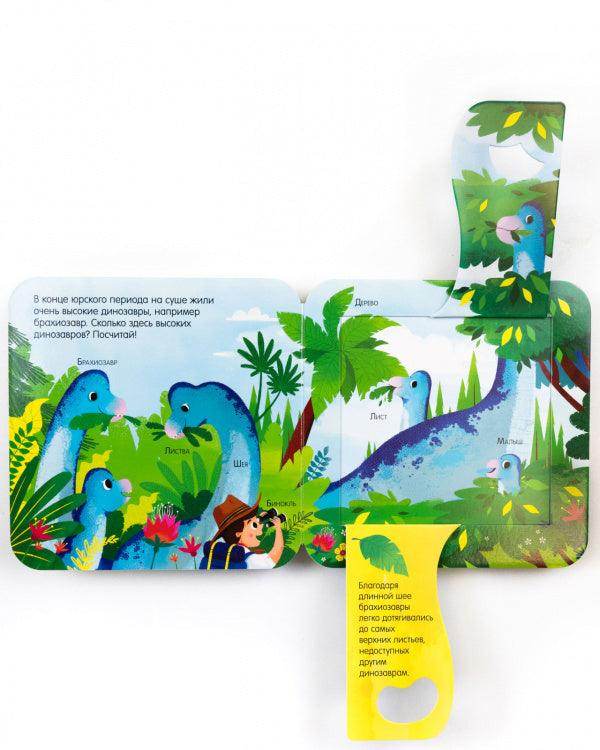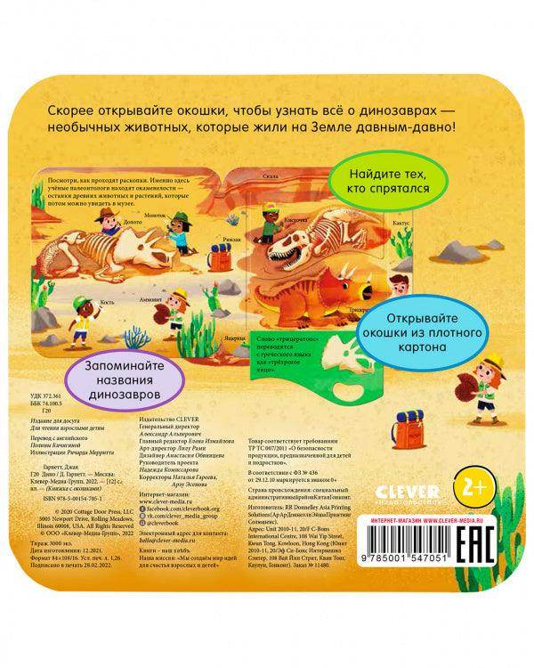 Книга выполнена из экологичного прочного картона и идеально подходит для маленьких ручек. Специально разработанная система клапанов-окошек превратит занятия с малышом в веселую игру, и ребенок захочет возвращаться к милой и познавательной книге «Дино» снова и снова.