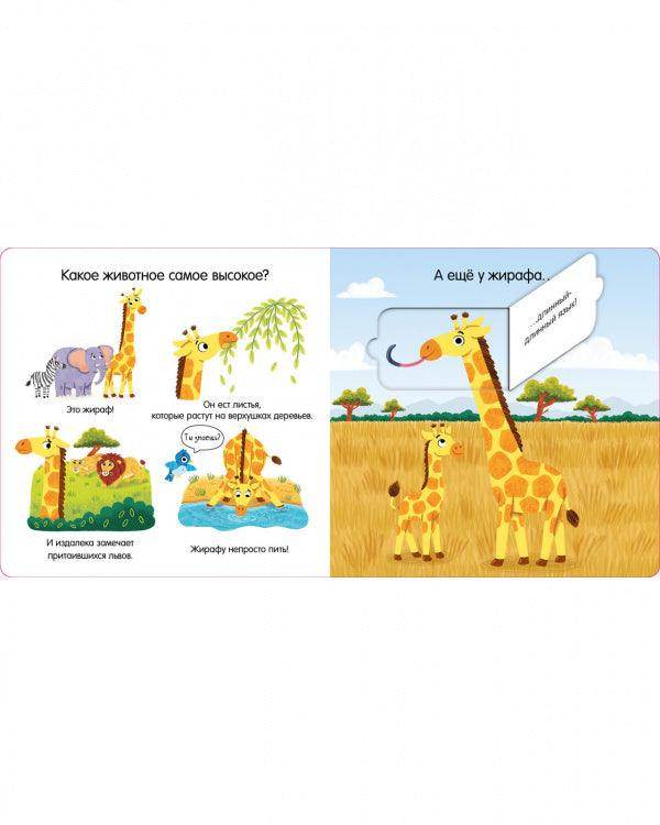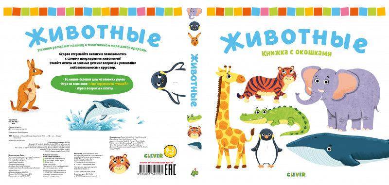 Книжка с окошками «Животные» расскажет малышу о таинственном мире дикой природы и познакомит его с самыми популярными животными разных континентов, средой их обитания, милыми детенышами, вкусами и привычками.