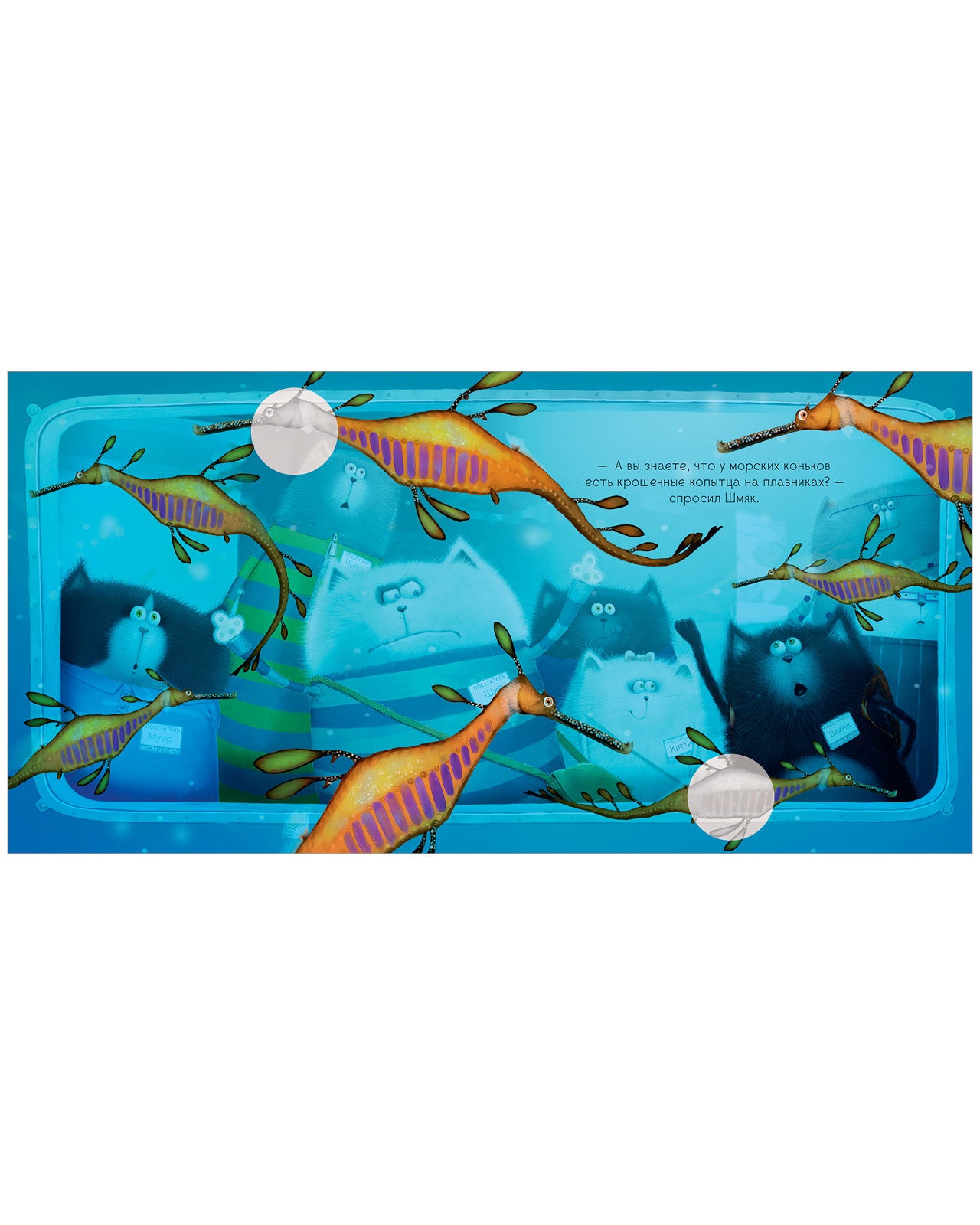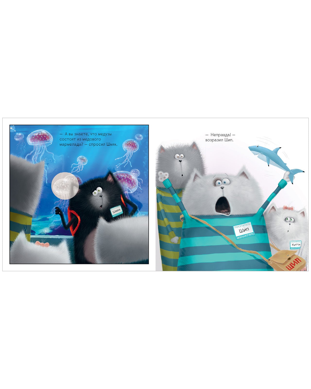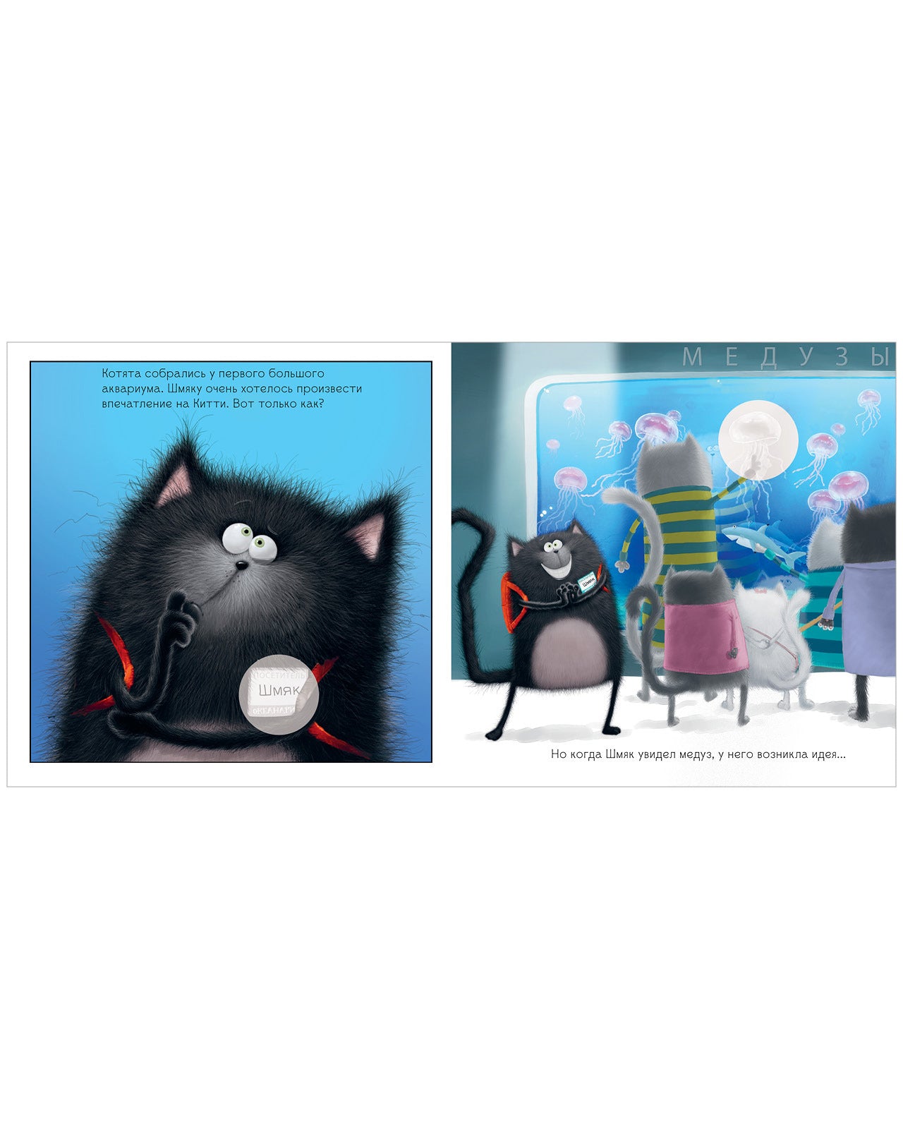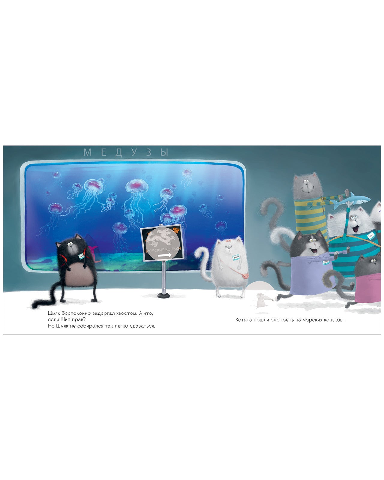 Котенок Шмяк отправился с классом в океанариум. Ему не удалось занять в автобусе место рядом с прекрасной Китти, и он думал, как бы произвести на нее впечатление. На экскурсии все изучали рыбок, и Шмяк решил показать, какой он знаток. Ведь только Шмяк знал, что медузы состоят из медового мармелада, а у морских коньков есть крошечные копытца…