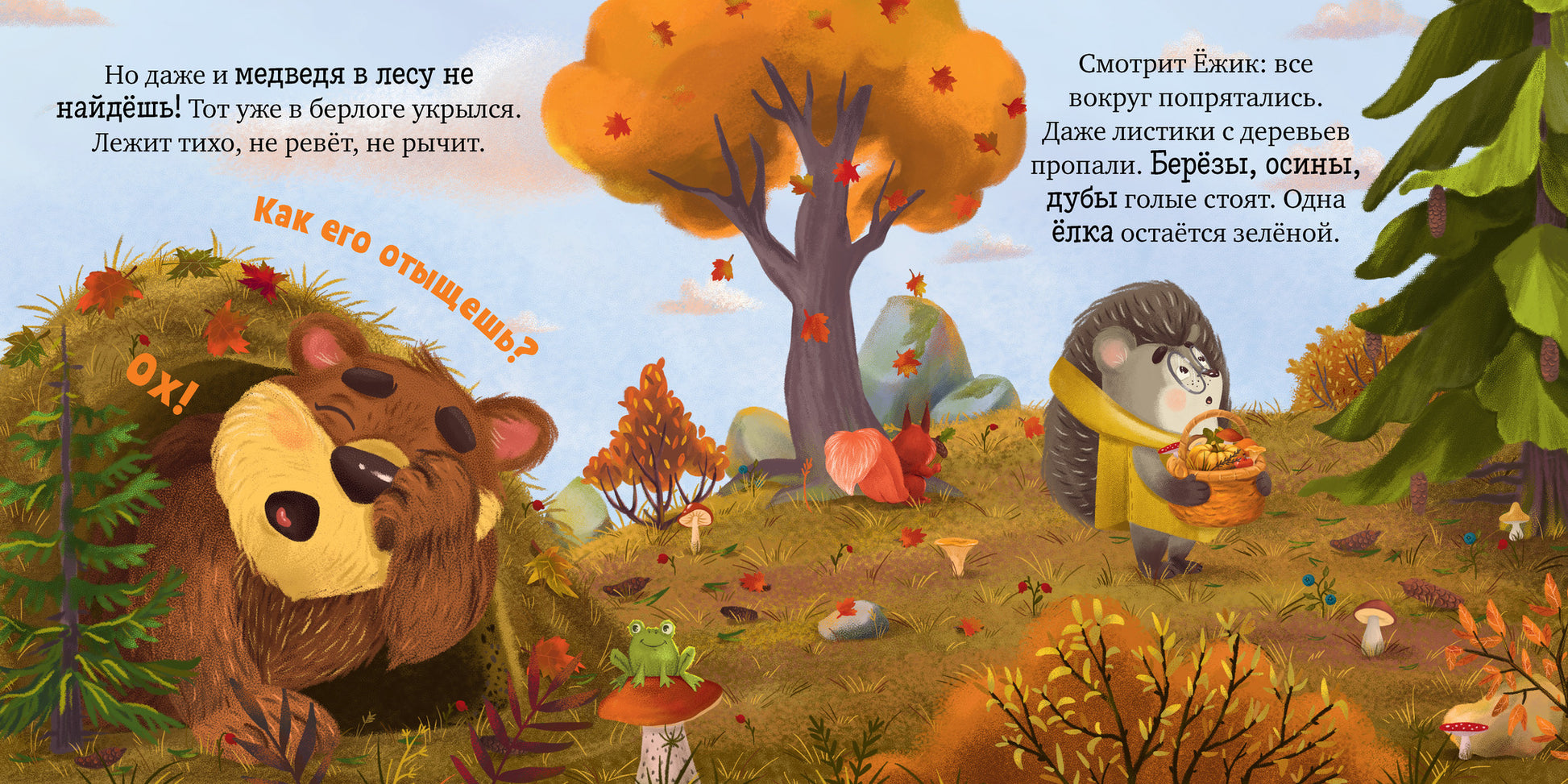 Книжка-картинка "Ежик и золотая осень" с невероятно уютными иллюстрациями и полезной сказкой расскажет малышу об отличительных приметах осени, о том, что происходит в природе в это время и как лесные жители готовятся к холодам.