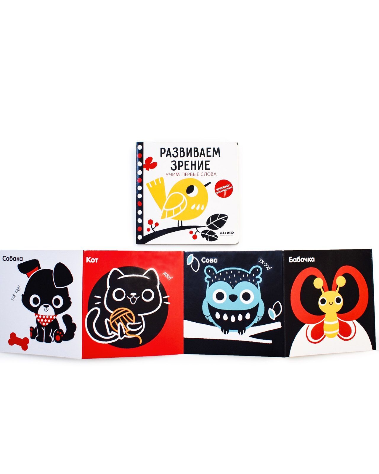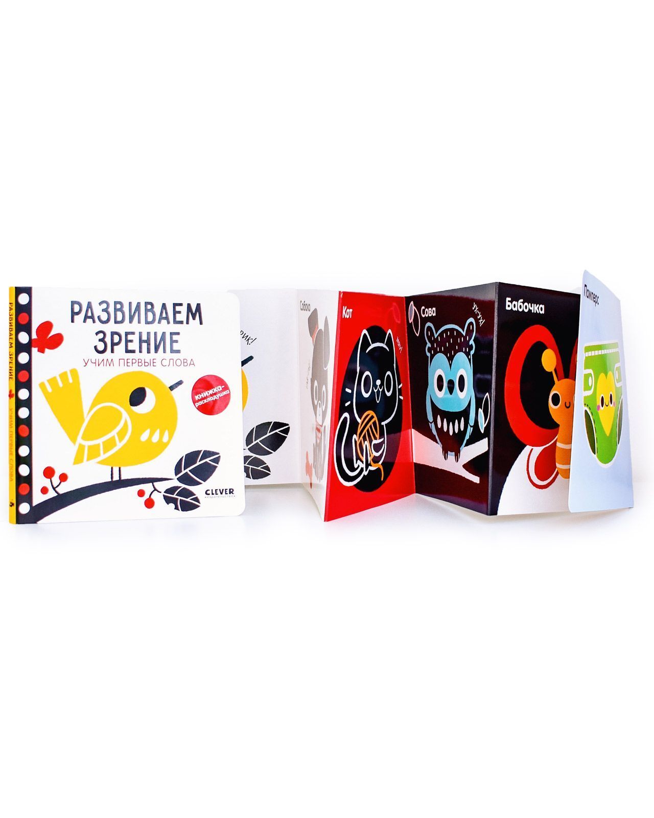 Контрастная книжка-раскладушка. Развиваем зрение. Учим первые слова