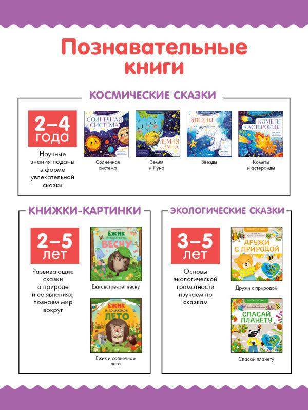Серия «Космические сказки» — развивающие книги для маленьких почемучек, где научные знания о планетах, звездах, кометах и астероидах поданы в форме увлекательной сказки.