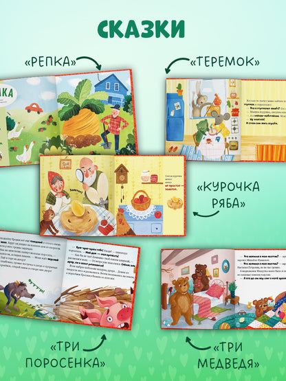 В книге собраны всеми любимые русские народные сказки. «Репка» и «Курочка Ряба» представлены в обработке К. Ушинского, а сказка «Три поросенка» — в переводе Д. Жирновой. Забавные иллюстрации подарят новую жизнь полюбившимся историям, а в конце книги маленьких читателей ждут развивающие задания и тематический лабиринт.