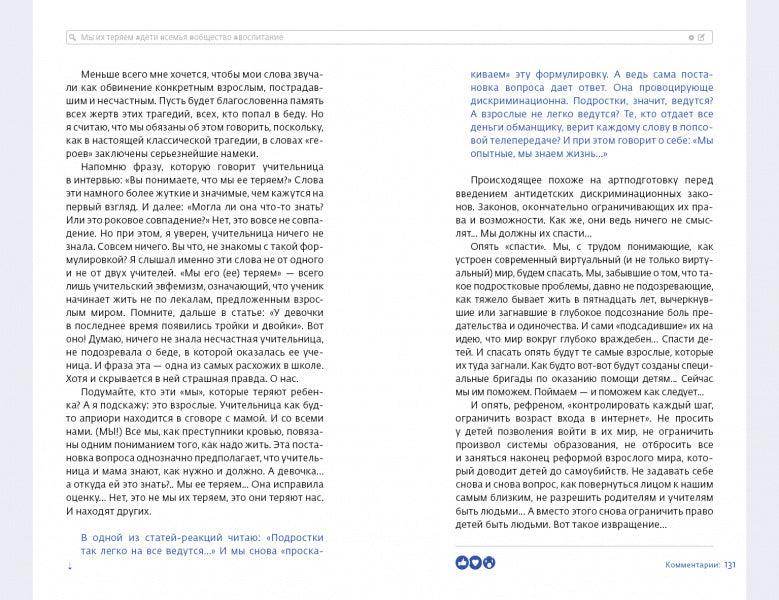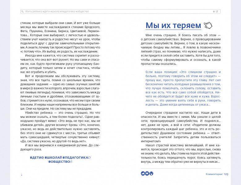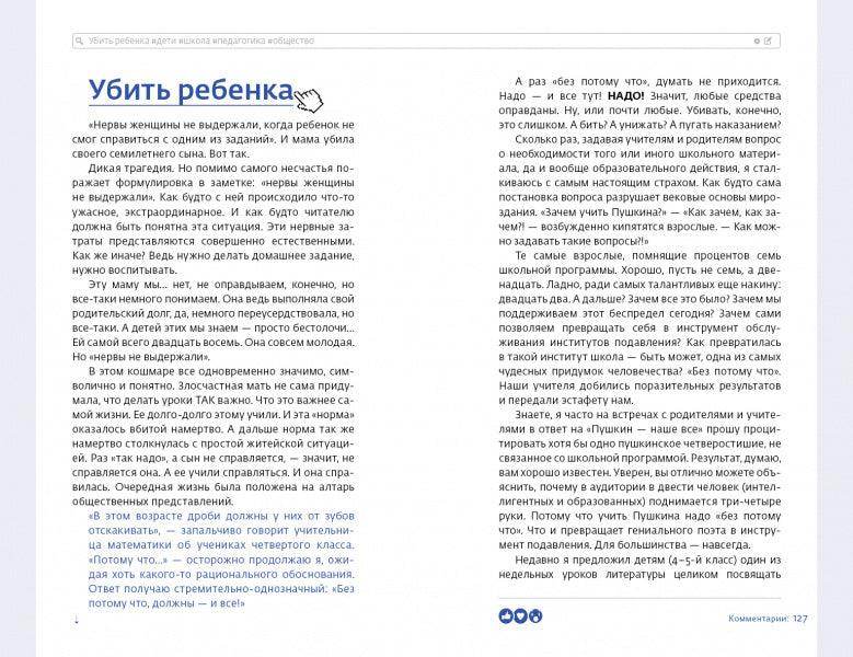 Статьи, посты, заметки, объединенные в этой книге, представляют собой реакции автора, опытного педагога, на конкретные ситуации, ответы на родительские запросы. А заодно это приглашение подумать и посомневаться вместе на самые разные темы, касающиеся взаимодействия с любимыми людьми. Именно поэтому, по сути, перед вами педагогический блог, в котором актуальность темы определяет форму и содержание статуса.