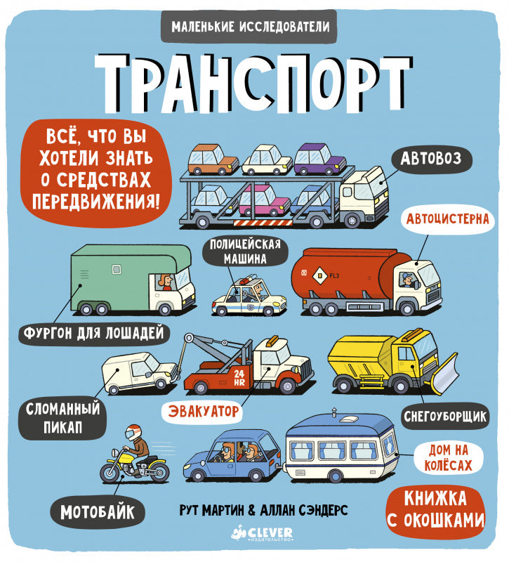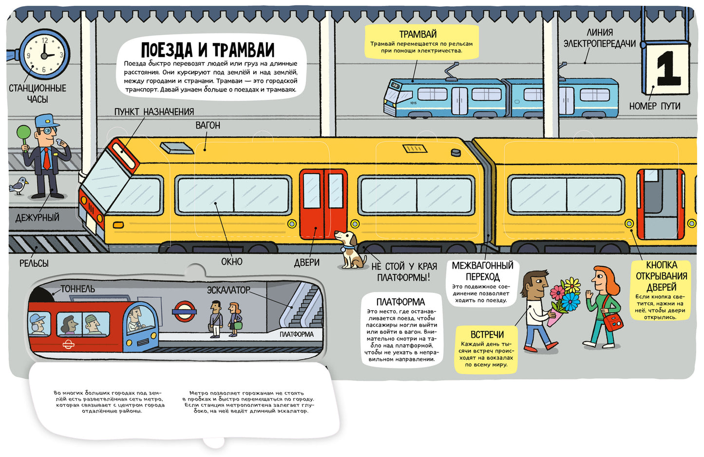 На каждом развороте подробный и очень понятный рассказ о том, какие бывают машины, поезда, корабли, и о том, как они работают и для чего служат. Хочешь узнать, кто ездит на автобусе? Открой окошко и все увидишь.