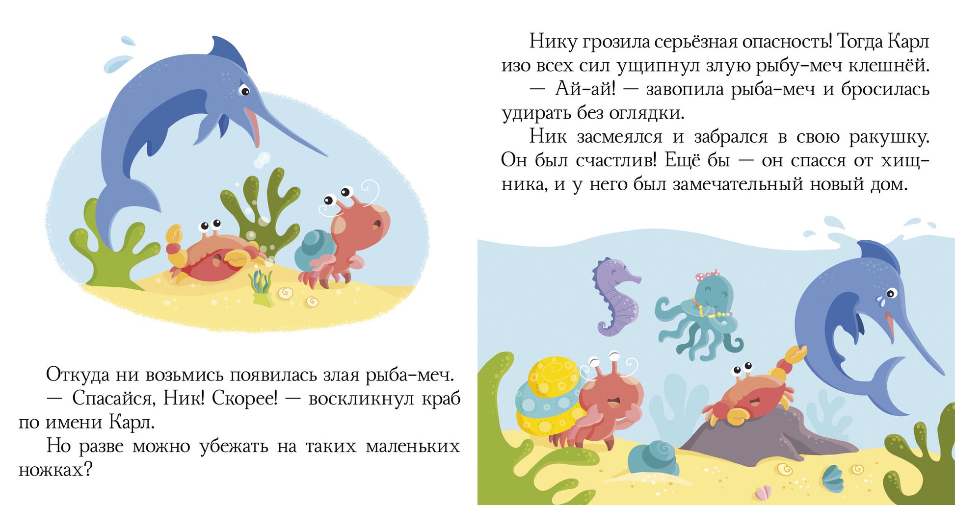 Добро пожаловать в море! Здесь на каждой страничке, то есть на каждой волне вас ждут морские жители: рыбки, осьминоги, водоросли и увлекательные истории, от которых ни взрослые, ни малыши не оторвутся.