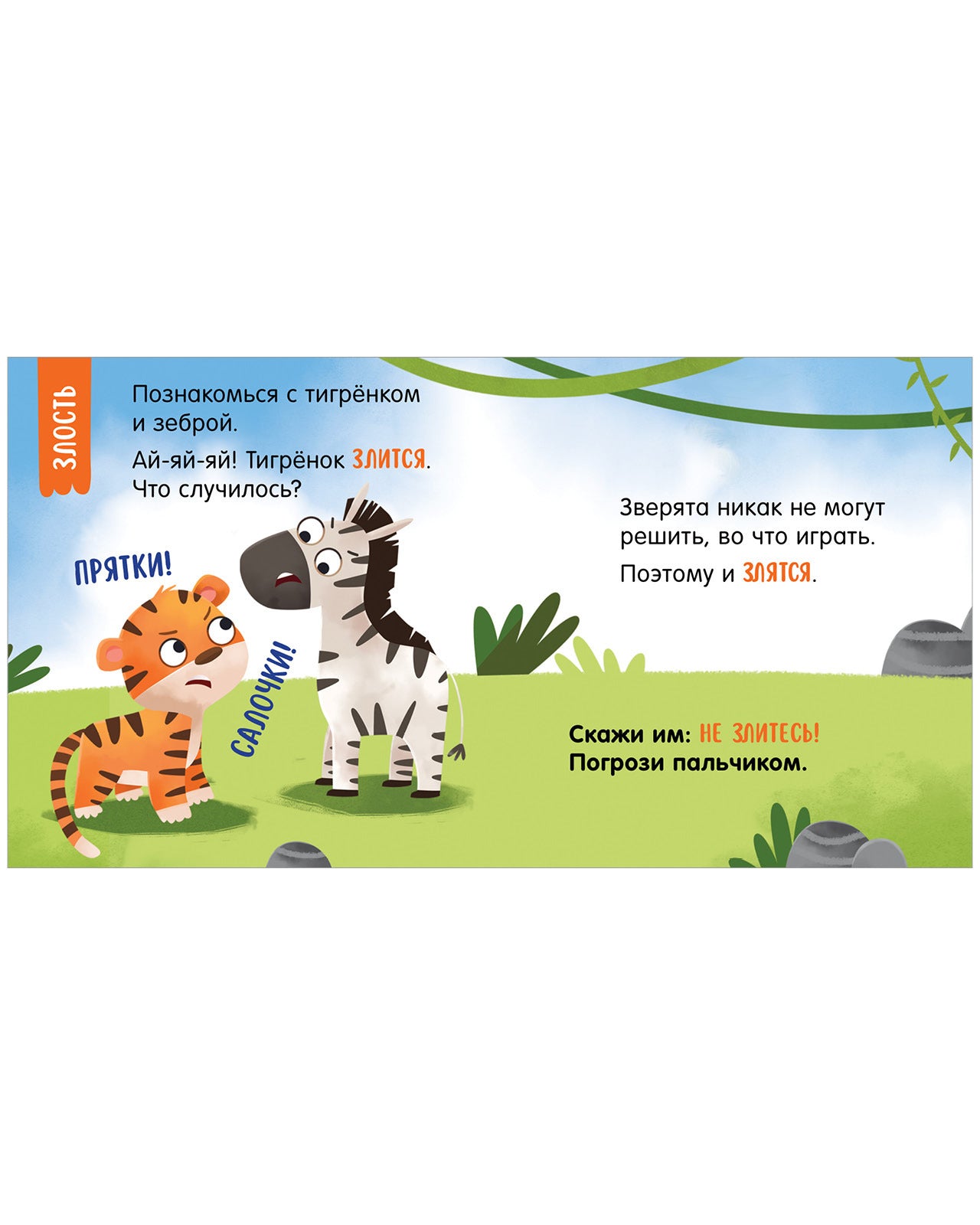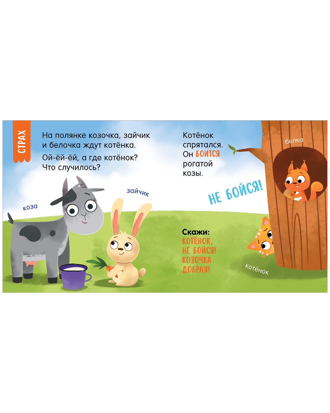 Малышам понравится изучать эмоции с этой интерактивной книгой. Отправляйтесь в увлекательное путешествие по страницам и с помощью познавательной сказки знакомьтесь с эмоциями: радостью, грустью, злостью и страхом. На каждой страничке малыша ждёт небольшое задание. Скучно не будет!