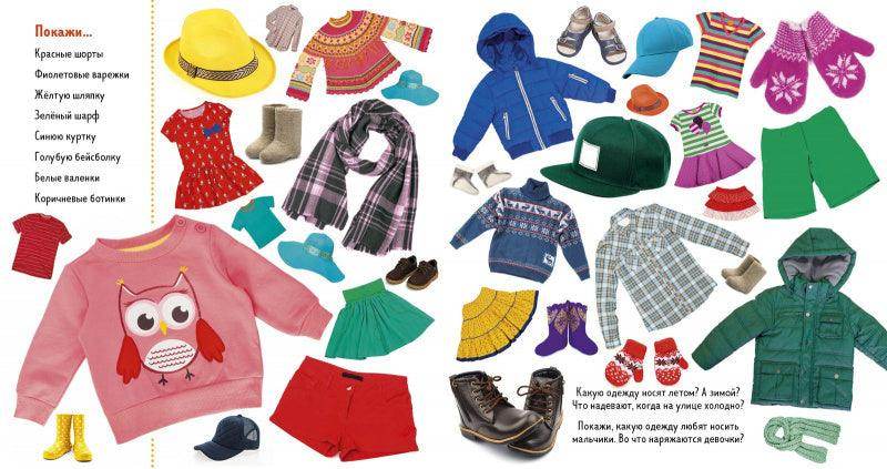 Эта занимательная книжка поможет ребенку в игровой форме запомнить названия времен года, цветов, предметов одежды, развить фантазию, речь, мелкую моторику и ассоциативное мышление.