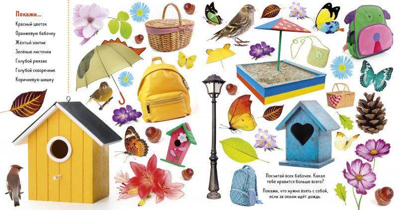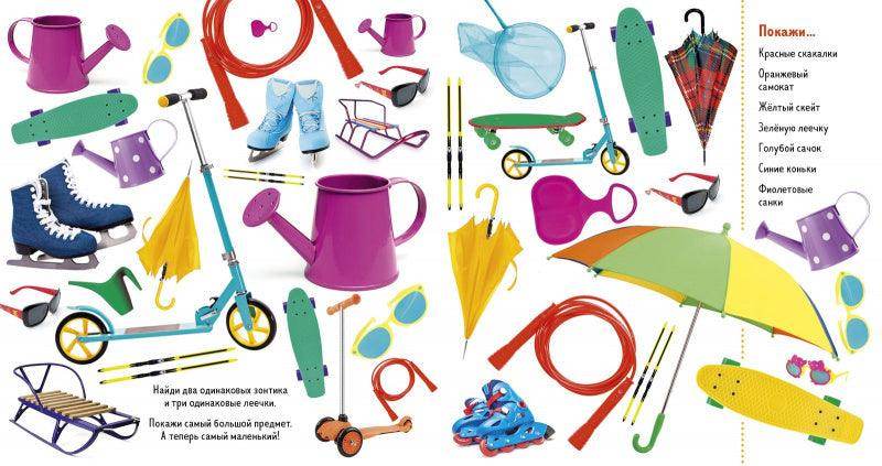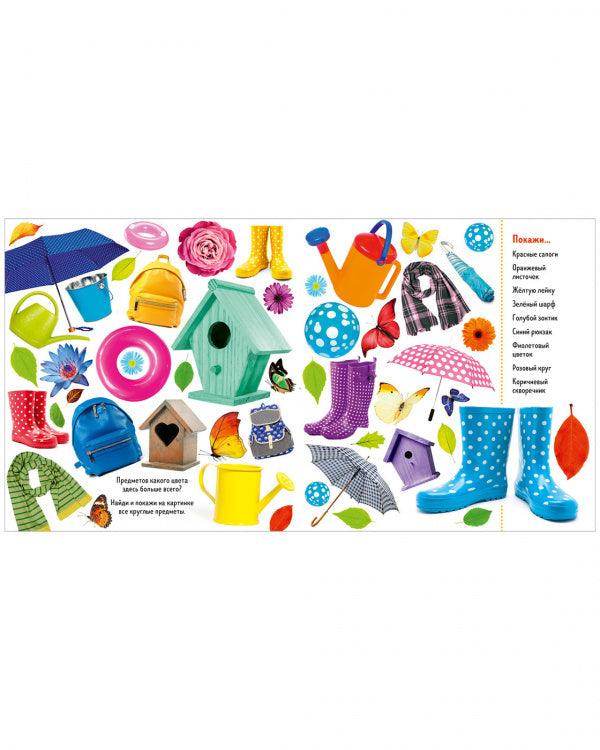 Кто первым найдет красный зонт? Синюю куртку? Фиолетовые цветы? На каждом развороте этой яркой фотокниги ваш малыш будет искать, называть и считать разноцветные предметы. Рассматривайте картинки вместе с ребенком, изучайте предметы, называйте новые слова — учитесь и играйте одновременно.