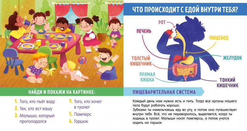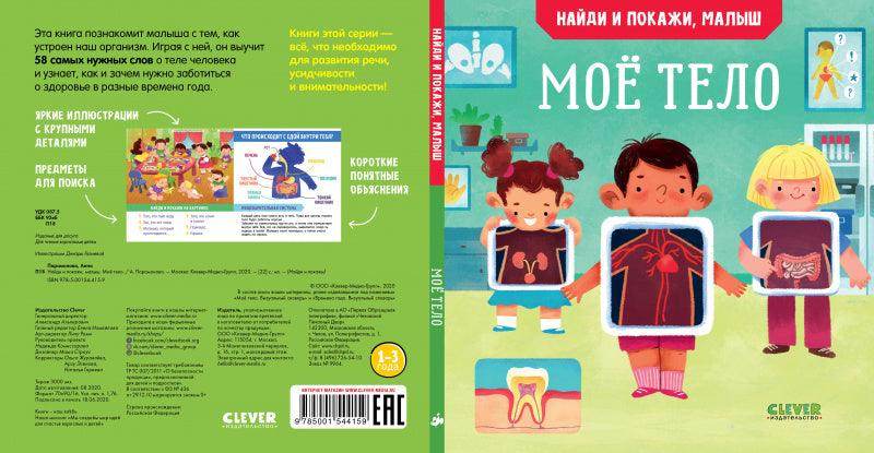 Книги этой серии — всё, что необходимо для развития речи, усидчивости и внимательности! Эта книга познакомит малыша с тем, как устроен наш организм. Играя с ней, он выучит 58 самых нужных слов о теле человека и узнает, как и зачем нужно заботиться о здоровье в разные времена года. Яркие иллюстрации с крупными деталями Предметы для поиска Короткие понятные объяснения.