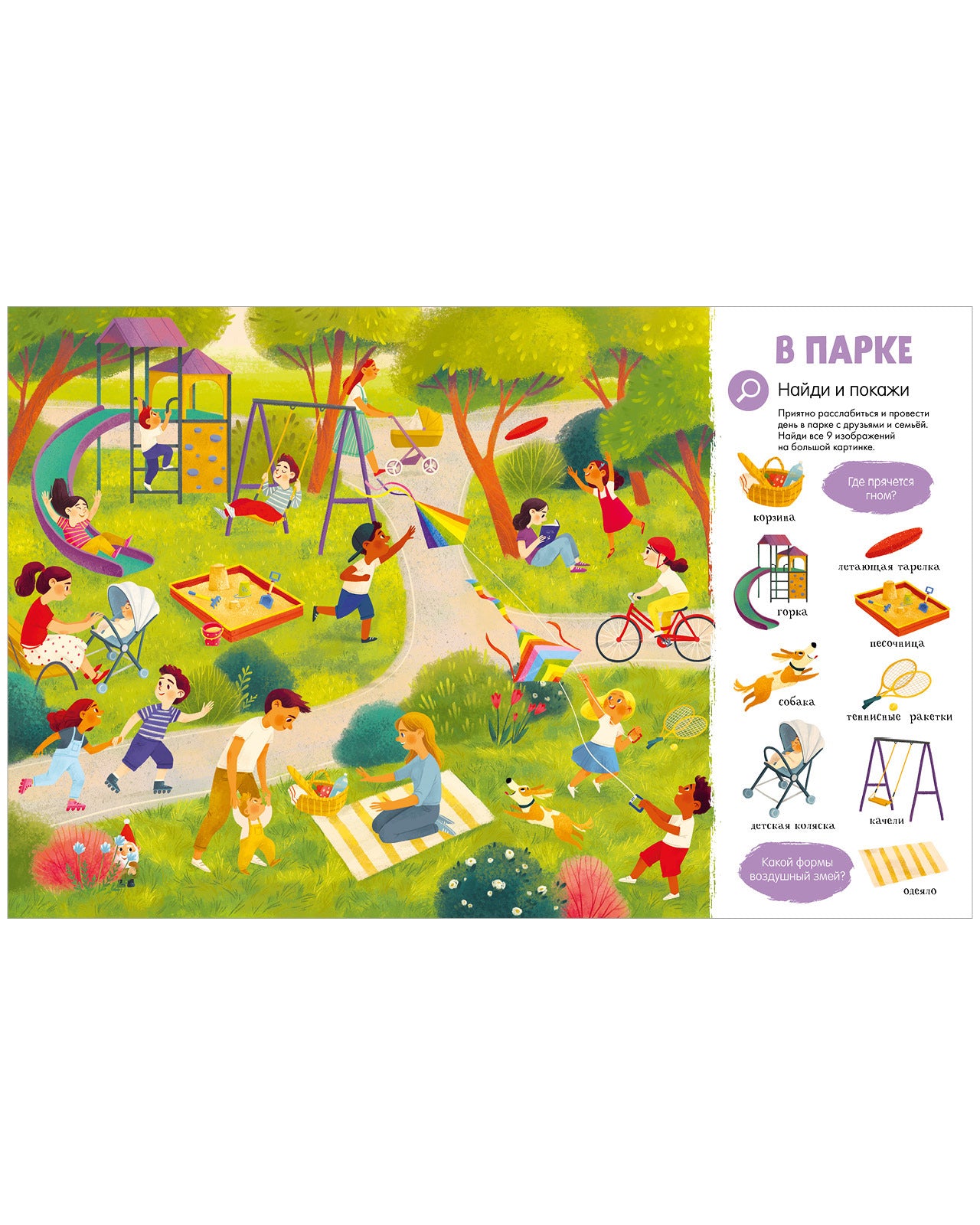 Вам предстоят увлекательные задания: найти все съедобные предметы красного цвета, обнаружить все оттенки зеленого, сосчитать на картинке всех детей в шлемах и многое другое. Удобный для маленьких ручек формат и неубиваемый твердый переплет сделают книгу одной из любимых на долгое время.