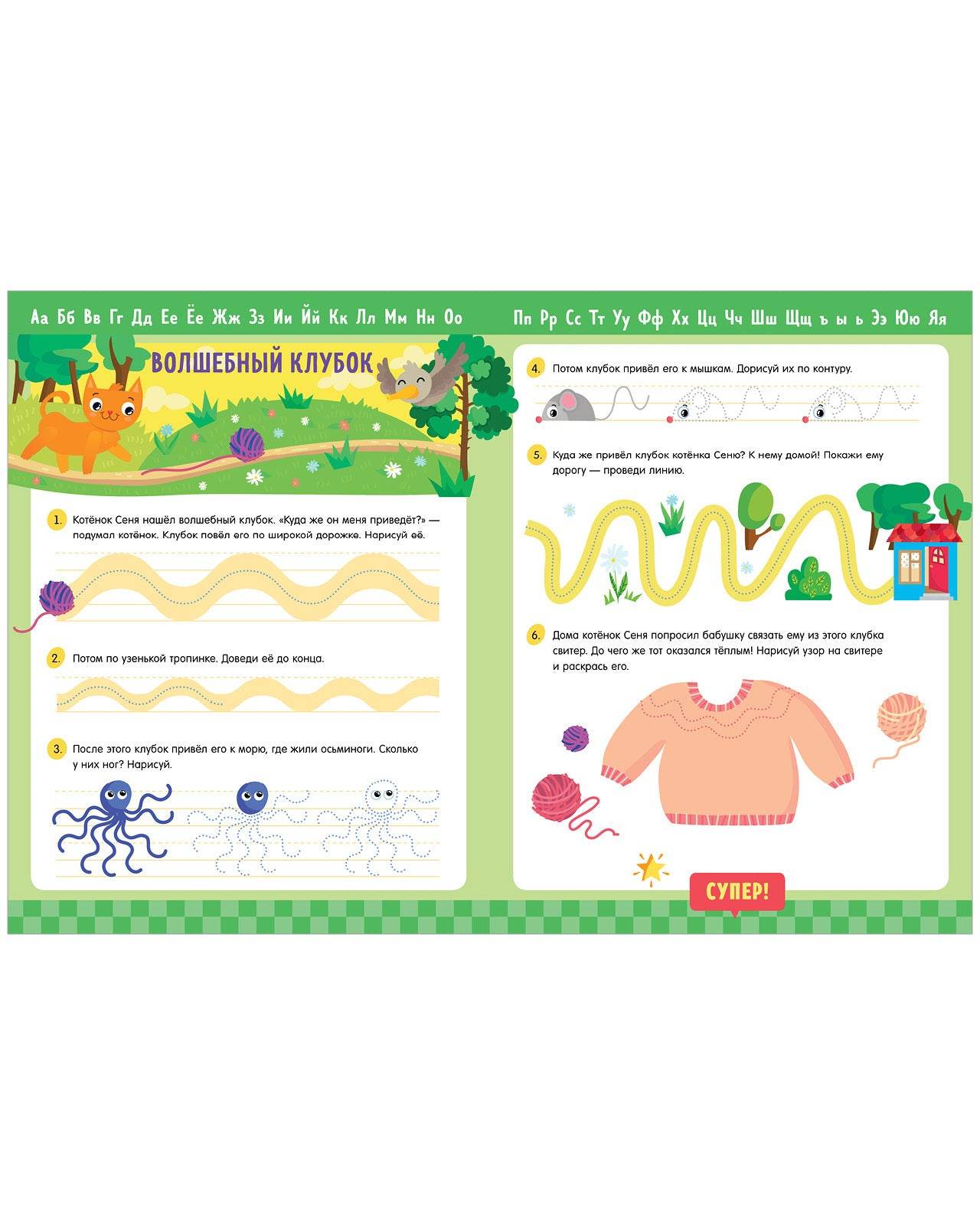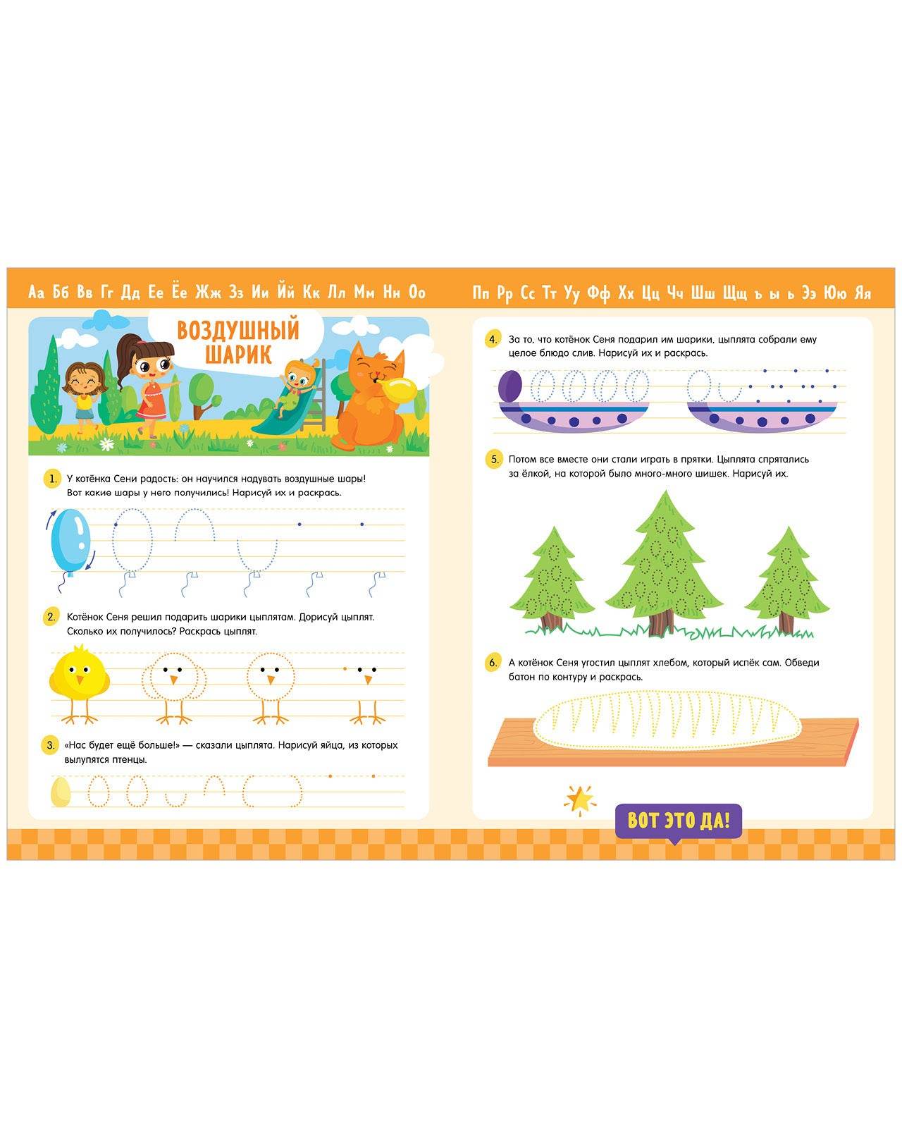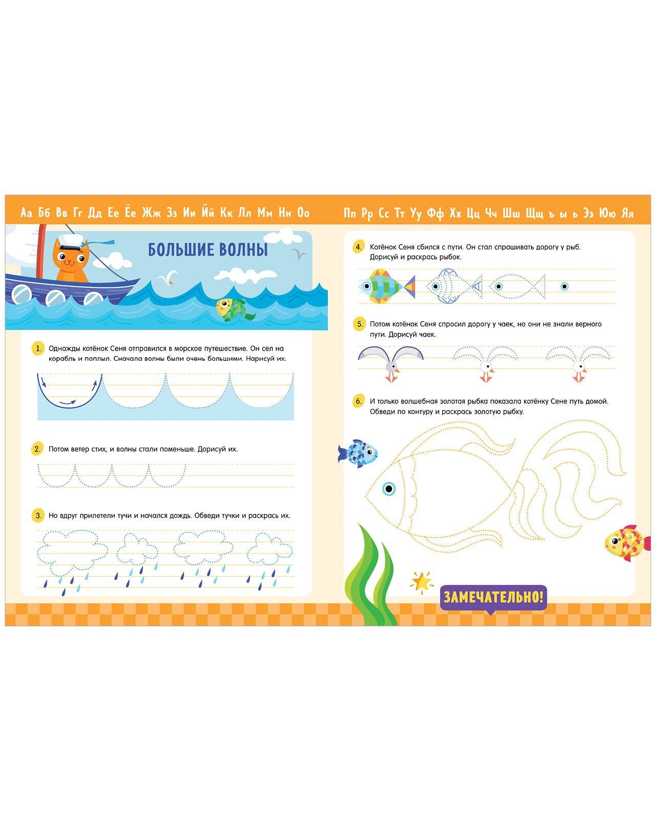 В книге представлены 3 раздела, по ним ребенок научится писать прямые палочки и линии; волнистые линии и круги; крючки, петельки и закорючки. В этой тетради ваш ребенок вместе с веселыми героями отправится в сказочную страну волшебных линий, где познакомится с написанием важных графических элементов.