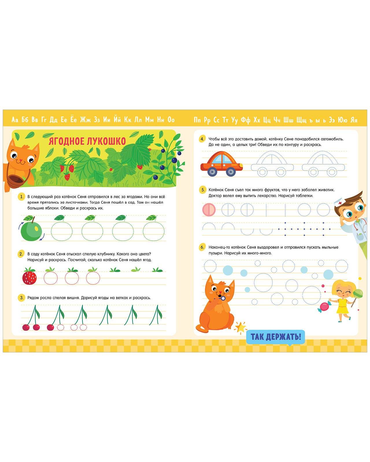 Серия «Обучение в сказках» - с помощью прописей ваш ребенок подготовится к чтению и письму в процессе веселой игры! В книгу вошли произведения из ранее изданных книг: «Обучение в сказках. Прописи с наклейками. Учимся писать палочки и линии», «Обучение в сказках. Прописи с наклейками. Учимся писать волнистые линии», «Обучение в сказках. Прописи с наклейками. Учимся писать крючки и петельки». В тетради собрано 300 увлекательных игр и заданий на каждый день.