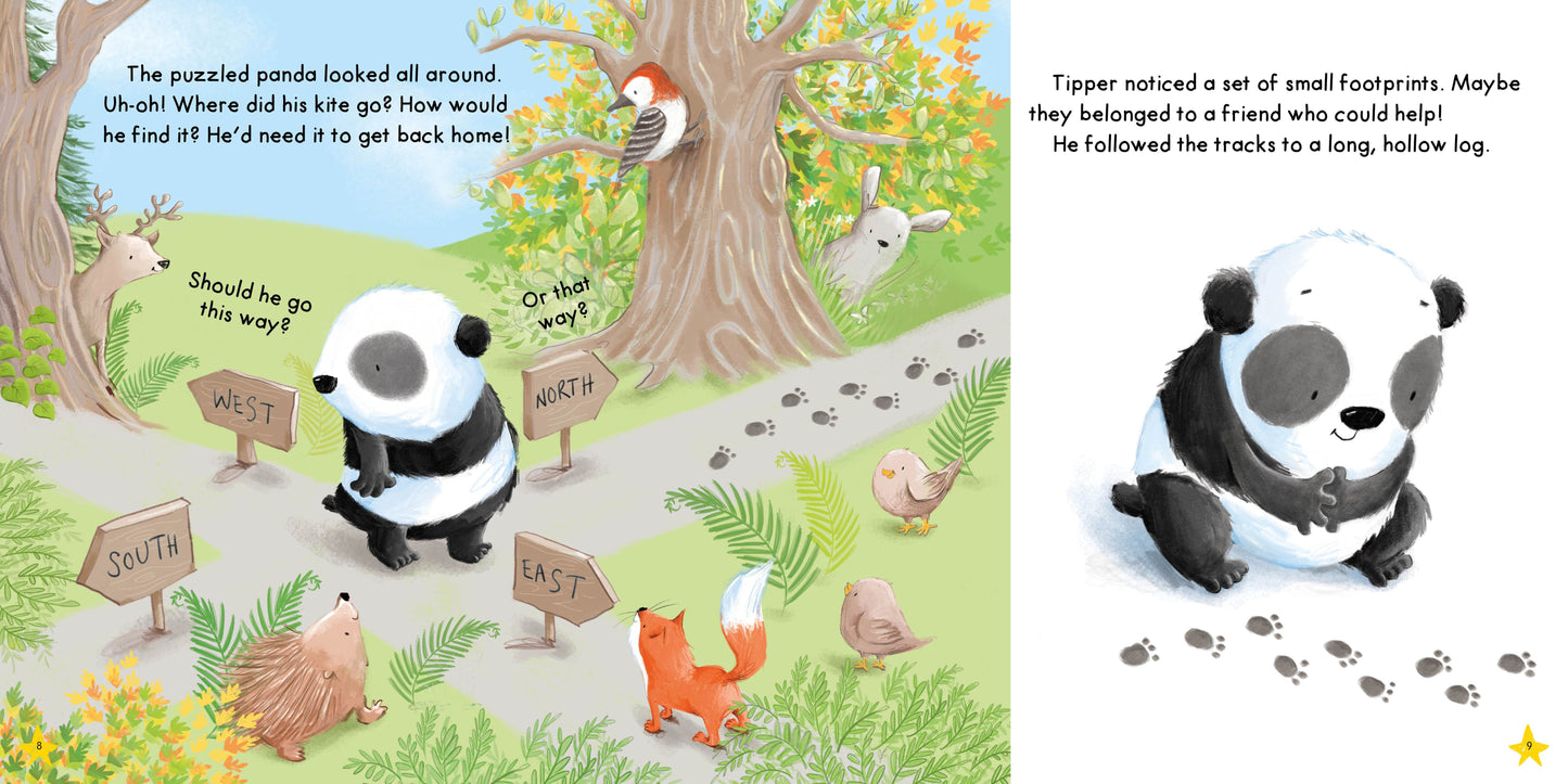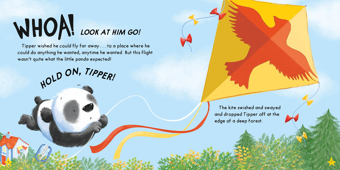 In this adorable picture book, a young panda experiences firsthand the wonders of a forest! One sunny and breezy morning, Tipper the panda cub is awoken by birds at his window. It's perfect kiteflying weather! One second Tipper makes a wish while holding the kite from his toy box and the next he's flying through the air and far from home! But when he lands at a forest's edge eventually, Tipper loses his kite. Without it, he's not sure how he'll get back home! As he chases it down, he encounters all sorts of animals who call this particularly diverse and lush forest their home. From a skunk and a beaver to turtles, eagles, and an even bigger bear, Tipper experiences a big, wide world he's never known until now. But will he be able to get back home? This fastpaced and delightfully bouncy story gently introduces preschoolers to the grandeur of forests, including familiar animals, trees, plants, terrain, and so much more. Kids will love reading along with the lively text as they cheer on Tipper, as well as the cute and colorful illustrations that make Tipper's journey jump off the page. Backmatter includes a page of information and forest facts for kids to use as a handy reference.