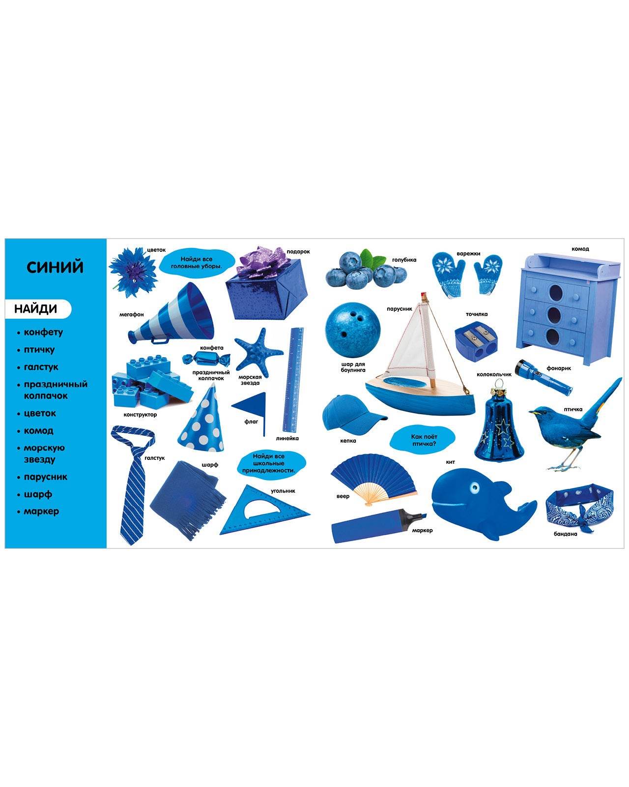 Путешествуйте по страницам и учите цвета: каждый разворот — это новый цвет.