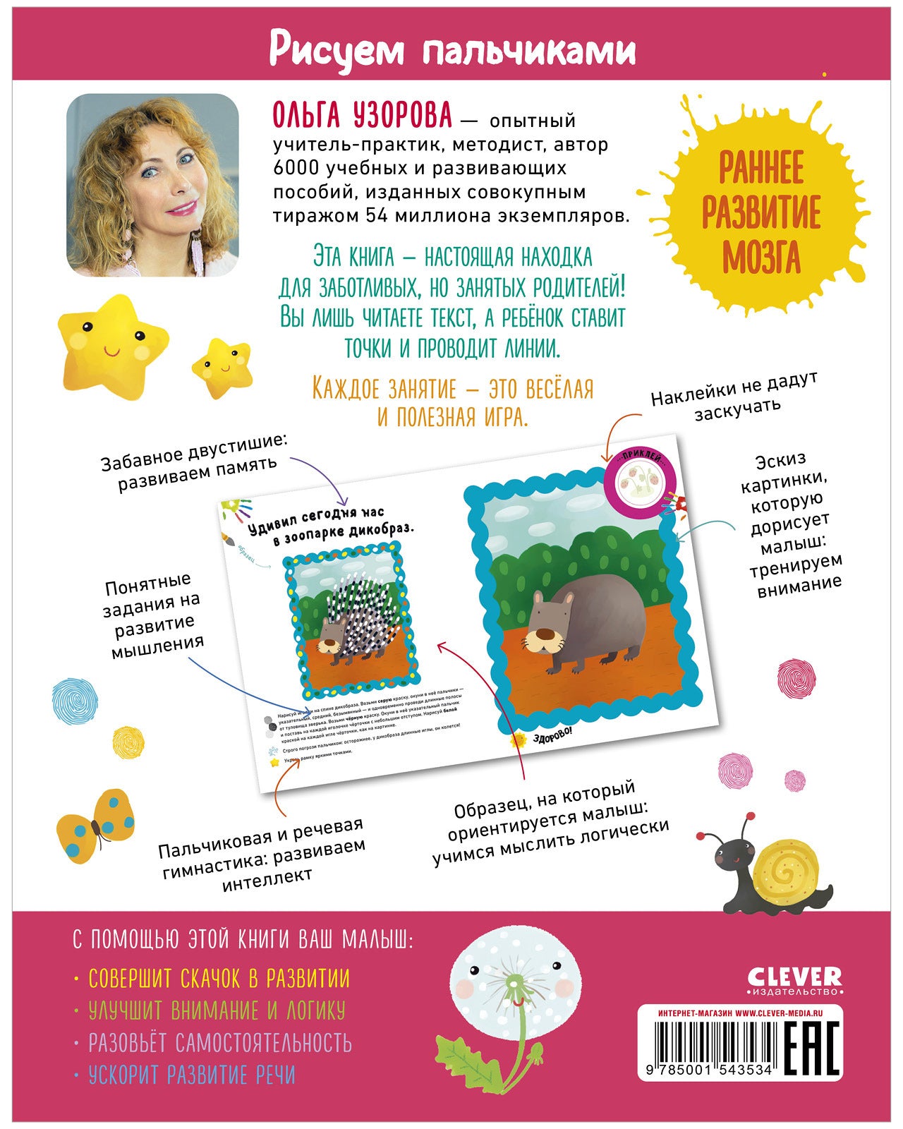 Ольга Узорова - опытный учитель-практик, методист, автор 6000 учебных и развивающих пособий, изданных совокупным тиражом 54 миллиона экземпляров. Эта книга - настоящая находка для заботливых, но занятых родителей! Вы лишь читаете текст, а ребёнок ставит точки и проводит линии. Каждое занятие - это весёлая и полезная игра. С помощью этой книги ваш малыш: • совершит скачок в развитии • улучшит внимание и логику • разовьёт самостоятельность • ускорит развитие речи