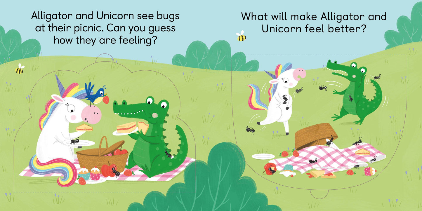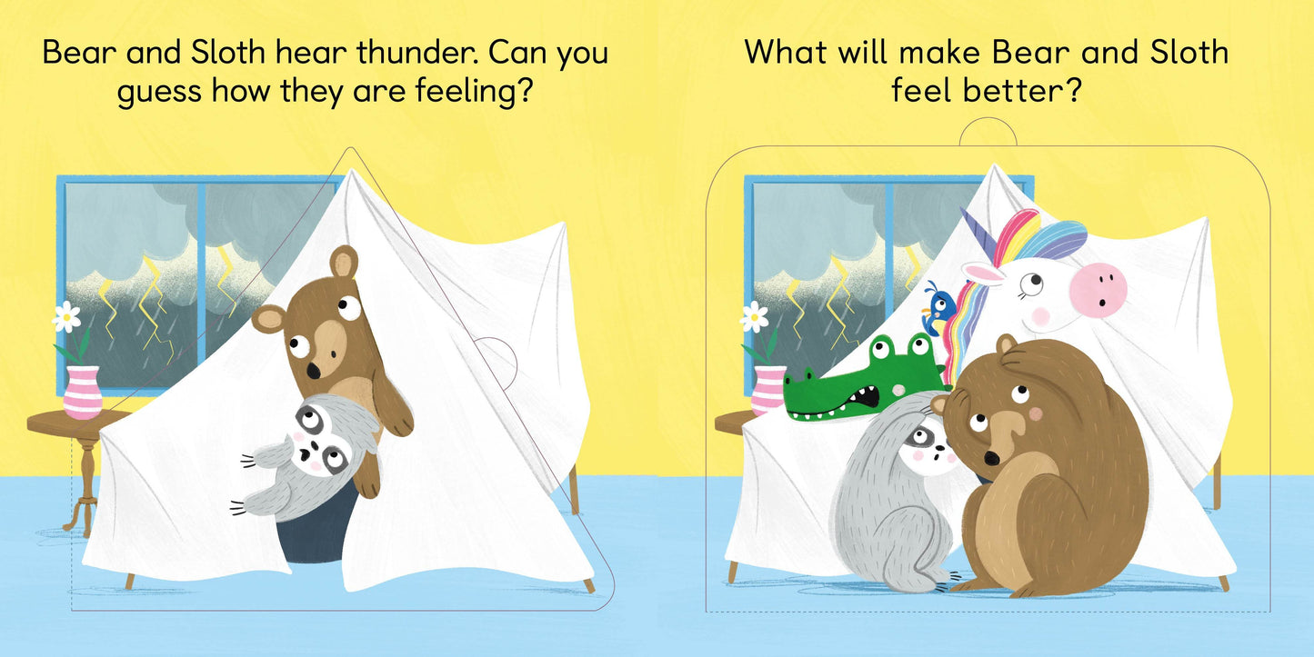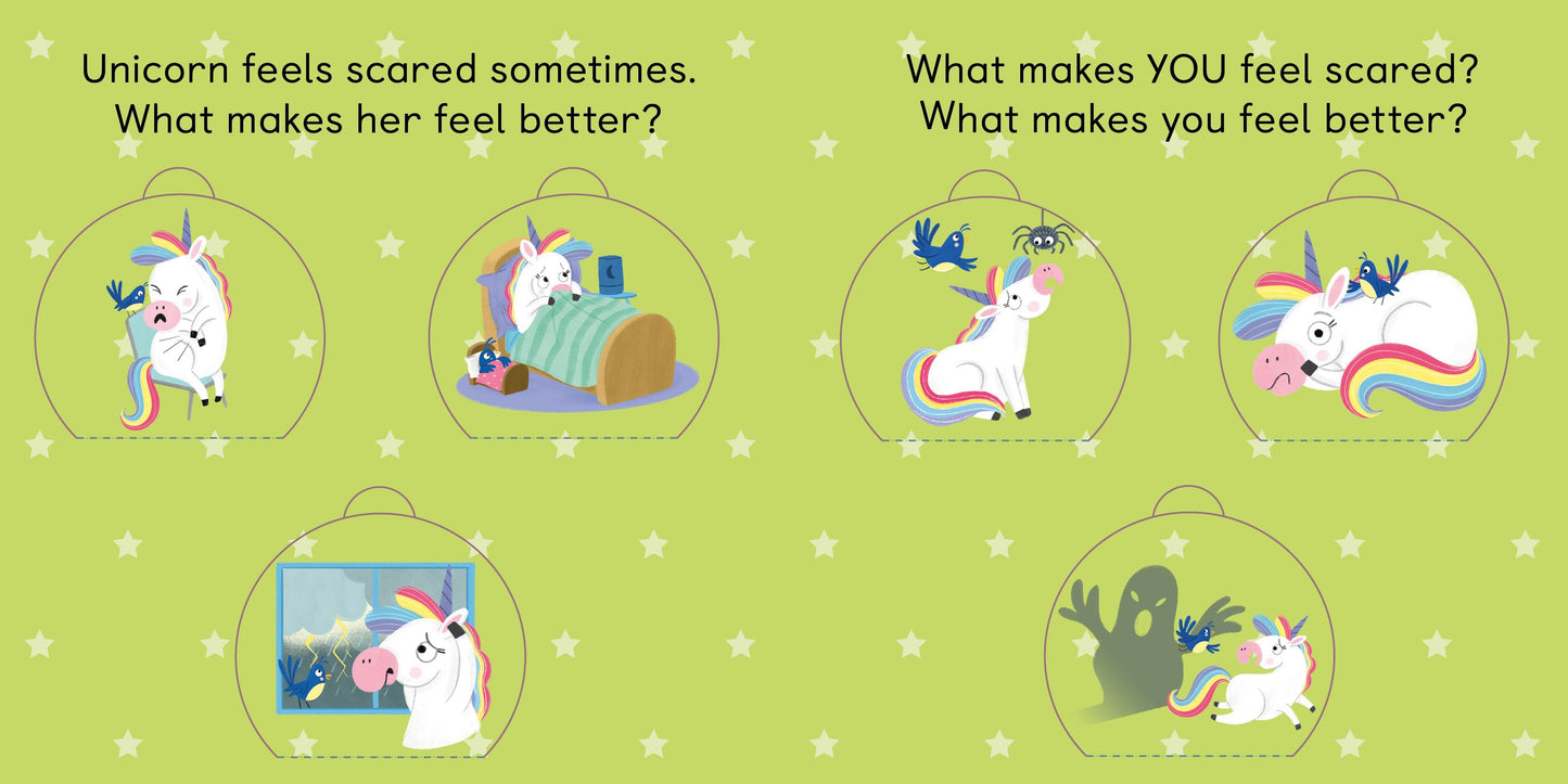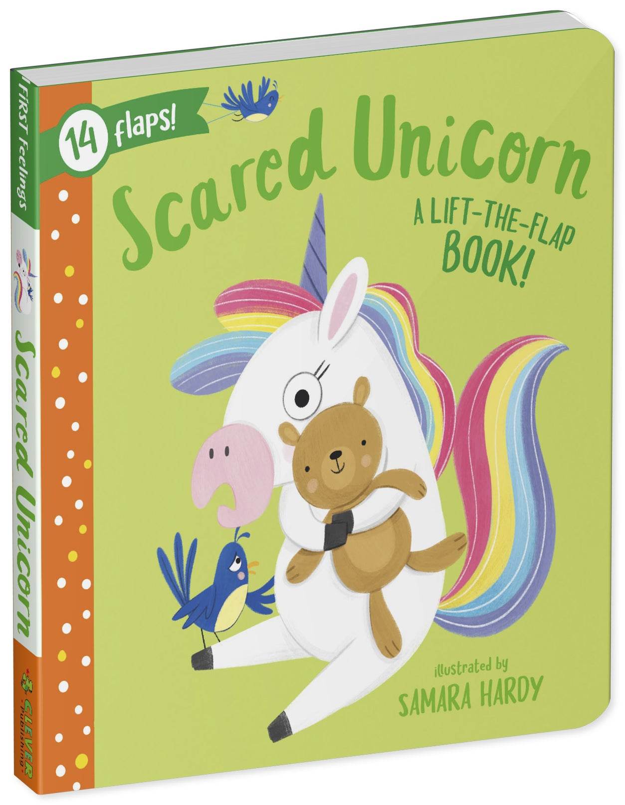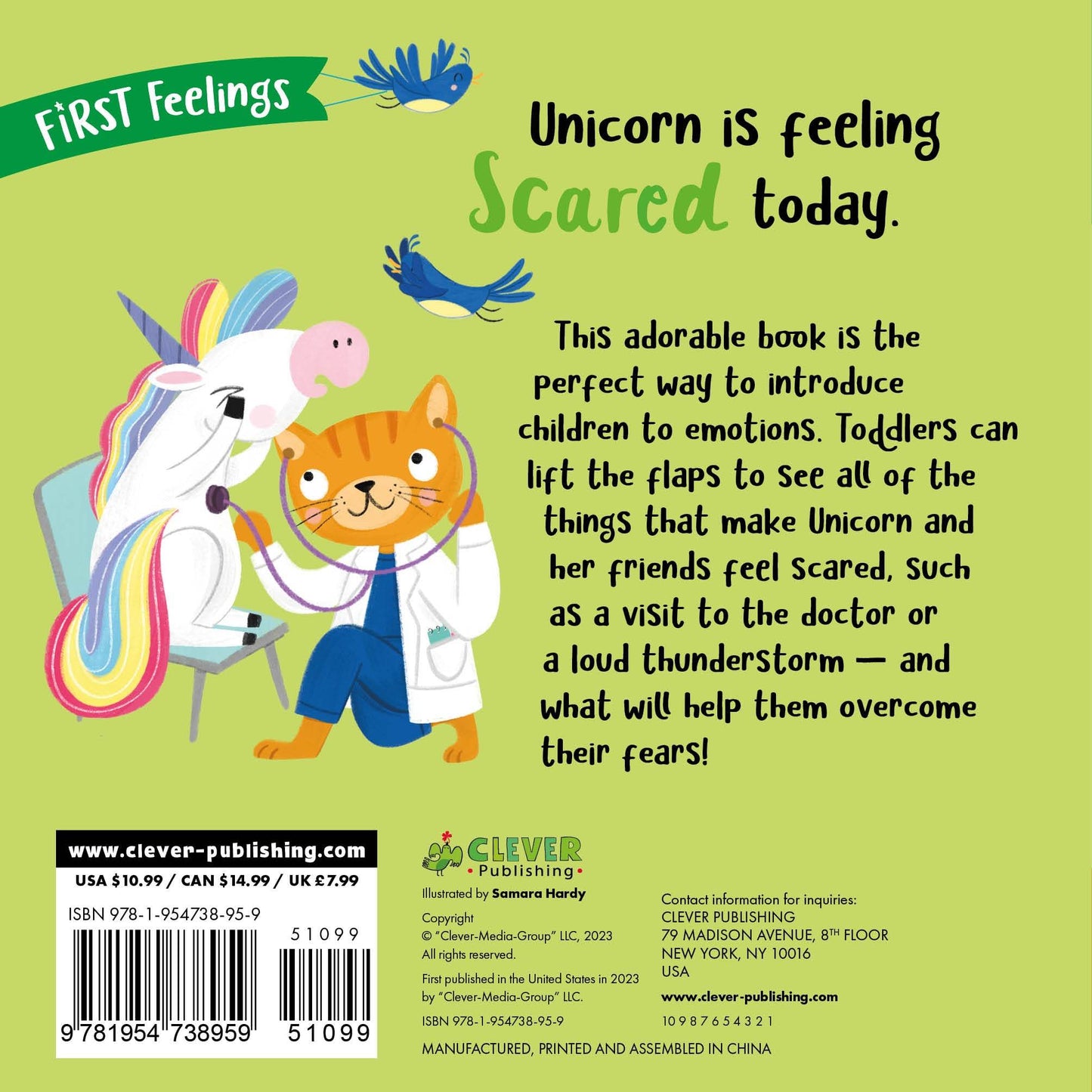 This adorable book, the third book in the First Feelings series from Clever, is the perfect way to introduce children to emotions. Toddlers can lift the flaps to see some things that make Unicorn feel scared, such as going to the doctor, a dark bedroom at night, a thunderstorm, and more. Children are invited to talk about what makes them scared, too, and some things they can do to handle a situation in which they feel scared.
