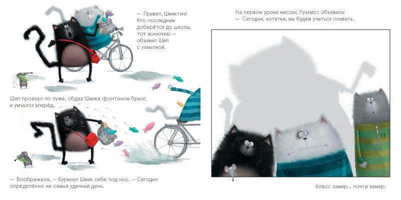 В этой книге Шмяк вместе с классом отправляется в бассейн. Но Шмяк вовсе не хочет учиться плавать: вода противная, мокрая, и он от неё НАМОКАЕТ! Оказывается, его приятель Шип думает точно так же. Как же котятам решиться сделать первый шаг и войти в воду?