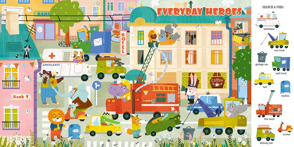 My First Search & Find: Things That Go combines a fun search and find activity with learning! Children can look for all kinds of vehicles and other things that go in a variety of scenes, such as a bustling town, a busy construction site, and a crowded airport. Bright, colorful illustrations showcase adorable animal characters operating the vehicles and other things that go while engaging in fun activities, such as driving a tractor, operating a crane, flying a plane, and many more. This exciting book includes detailed artwork to capture and hold a child’s attention, while the search and find element helps children to improve their concentration and logic skills.