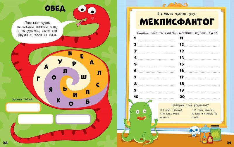 Очень понравилось задание на составление слов из имени чудища - играли всей семьёй, весело и познавательно.