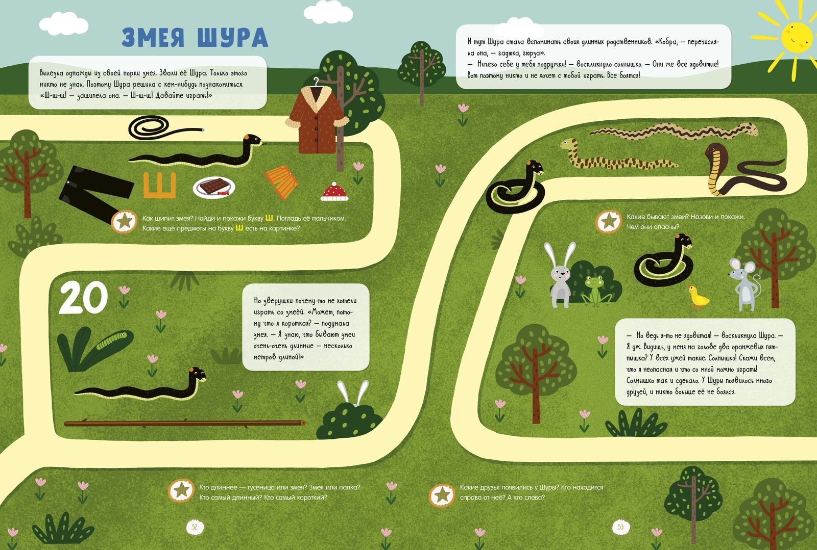 Каждый разворот книги — веселая, яркая история с заданиями на всестороннее развитие ребенка. Интересное путешествие, построенное в виде игры-ходилки, а также интересные сюжеты и милые герои непременно заинтересуют маленького непоседу. Удобная структура пособия и гид для родителей сделают механизм развития понятным и эффективным. Помните, хорошее обучение в детстве — это залог будущих побед и успехов вашего ребенка!