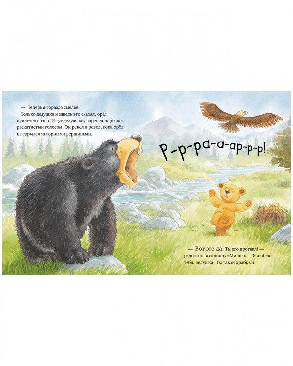 Мишка думает, что он может делать всё сам и лучше других: с легкостью ловить рыбу и быстро рыть берлогу. Когда дедушка медведь показывает ему свои умения, медвежонок понимает, что иногда стоит поучиться у старших и прислушаться к ним.